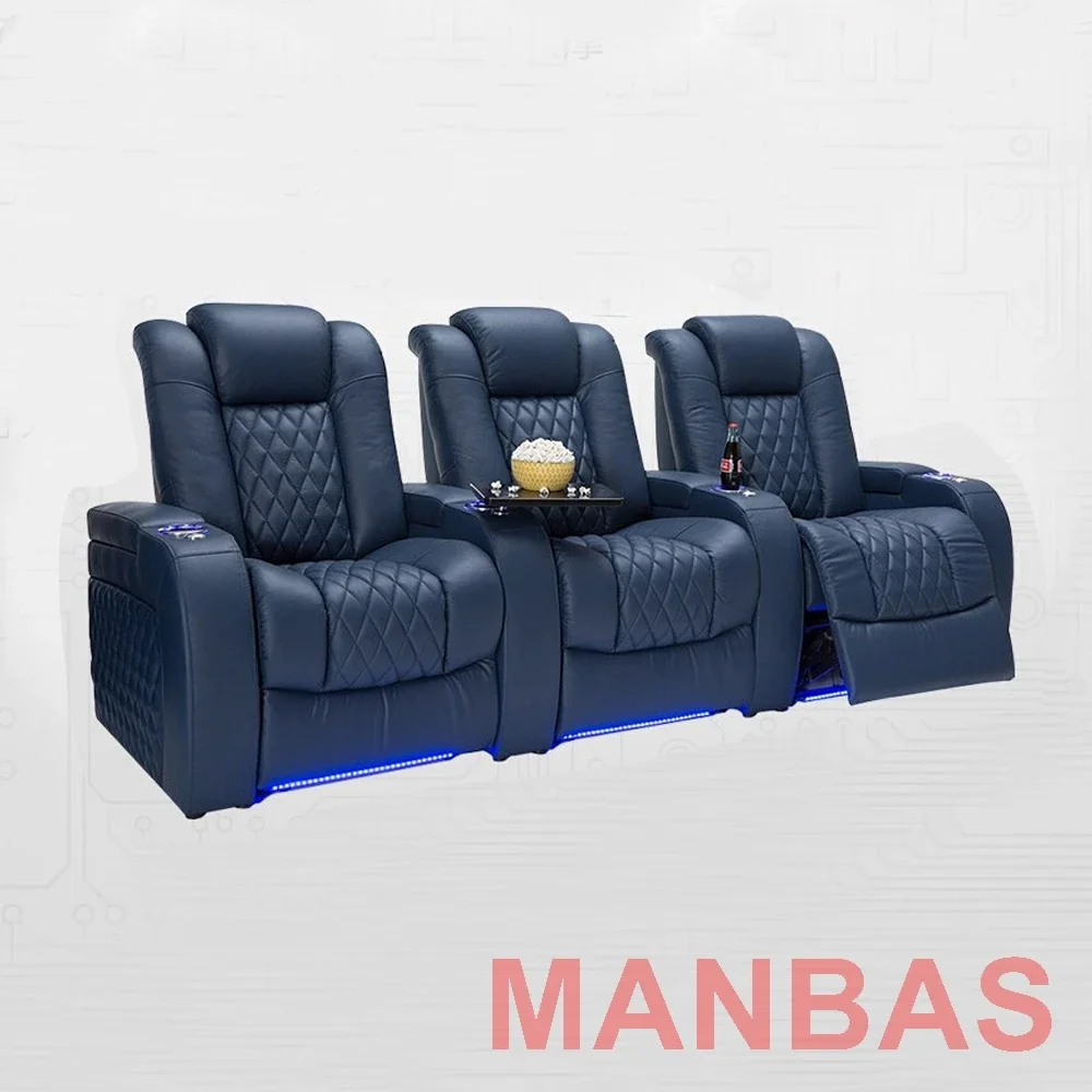 Dual Motors electric recliner massage chair theater living room Sofa functional genuine leather couch Cinema Double Power Seats