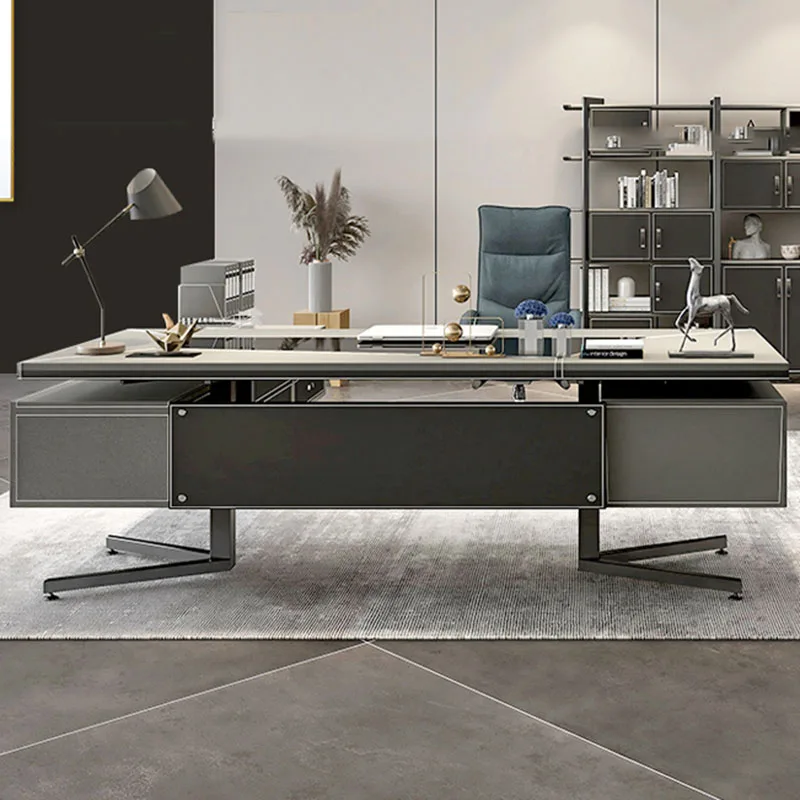 European Luxury Office Desk Supplies Glass Long Writing Computer Desksreception Drawers Mesa De Computador Modern Furnitures