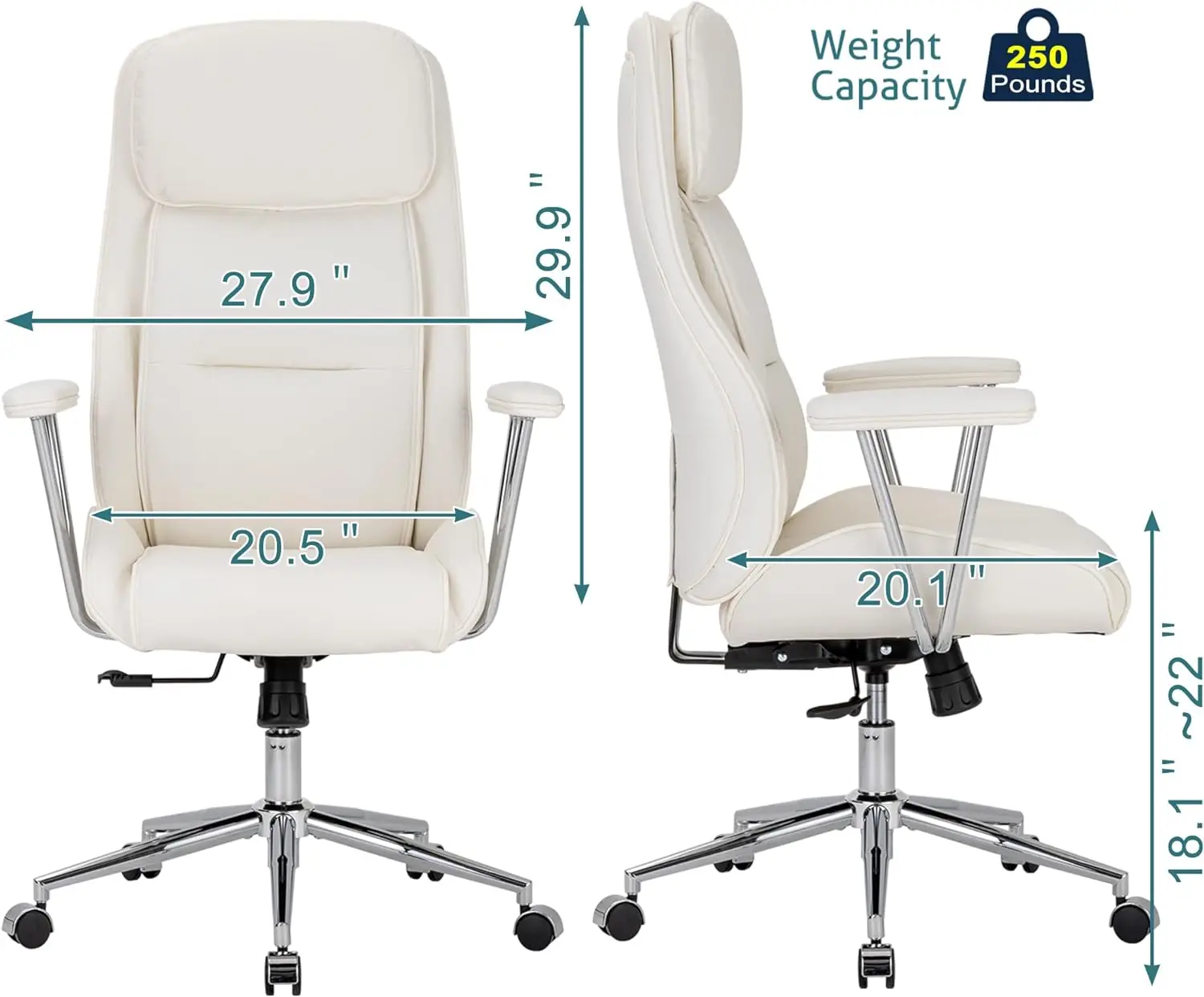 - 【Tilt Adjustable】 With great range for adjusting the backrest angle from 90°~145°, this PU leather office chair can be locked at any position for a variety of working and relaxing requirements, which makes it easy to customize for the suitable comfort and support. Moreover, ergonomic high back design gives consideration to decent lumbar support and sitting position.
