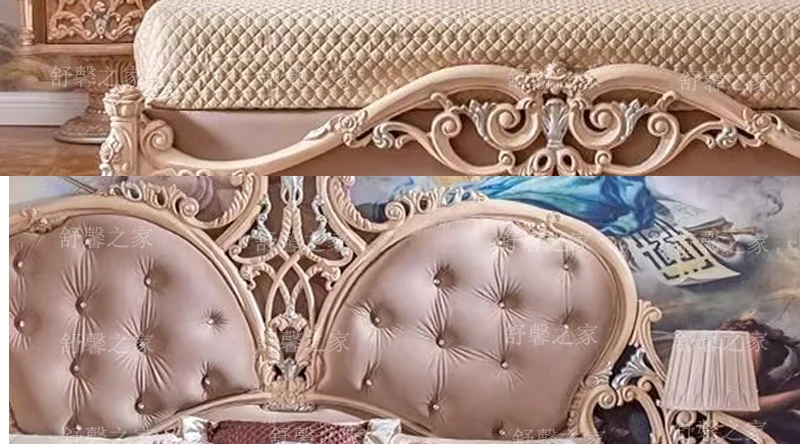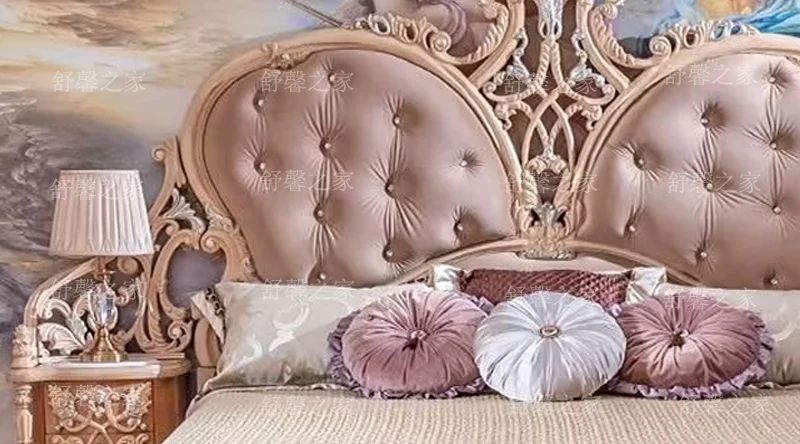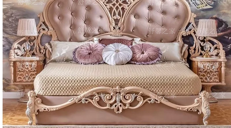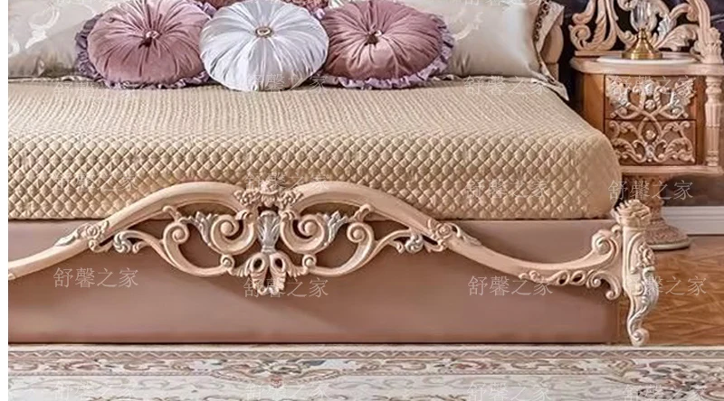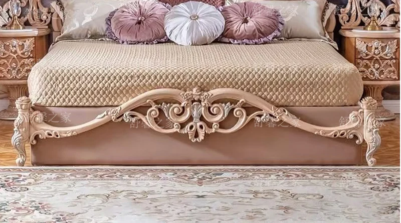 French solid wood carved bed, bedroom, princess bed, luxurious whole house furniture in European villa