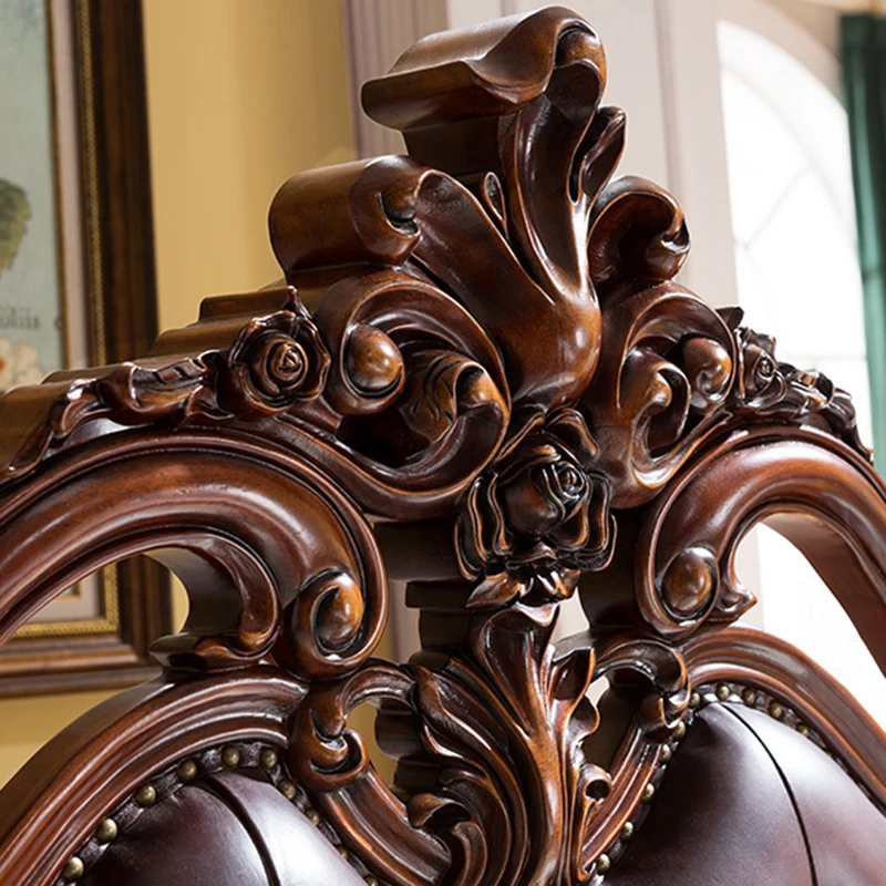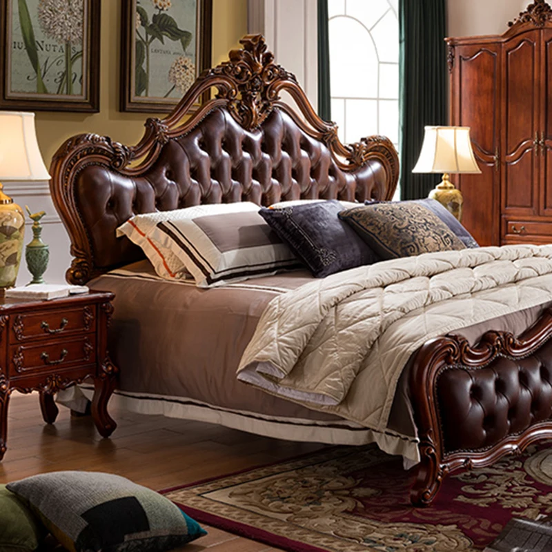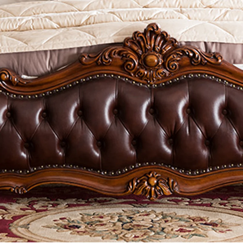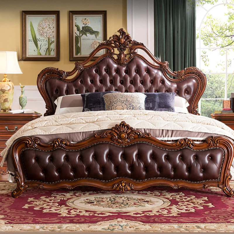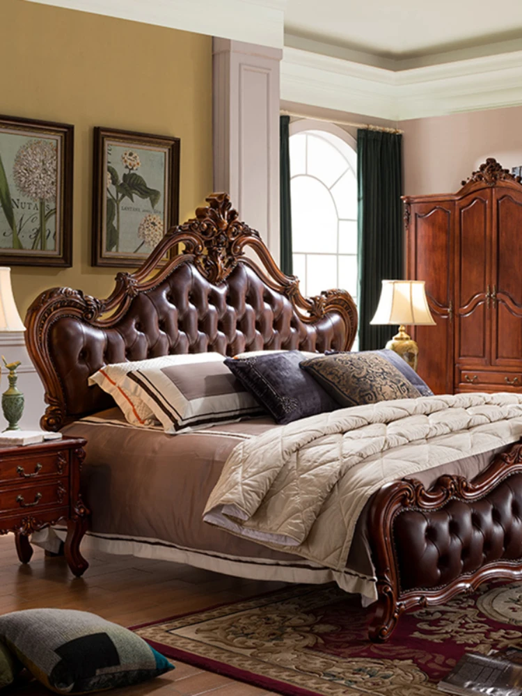 High quality European solid wood double bed wedding bed American furniture 1.8m master bedroom leather soft leather princess bed