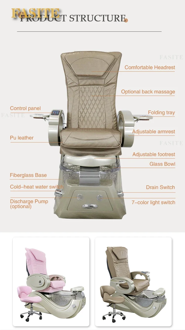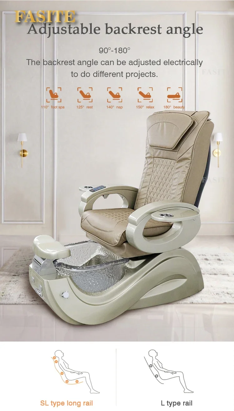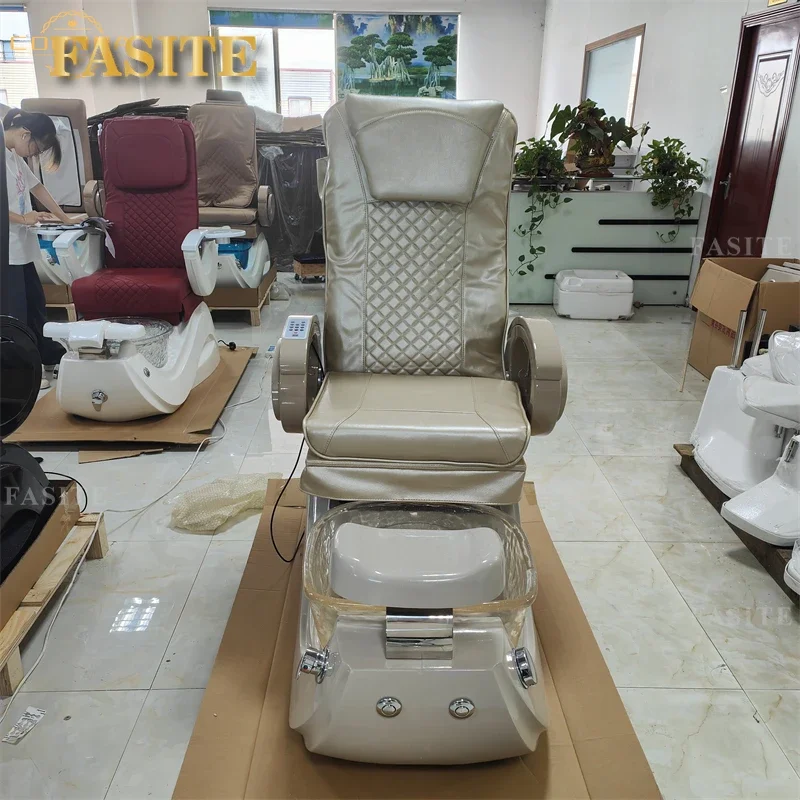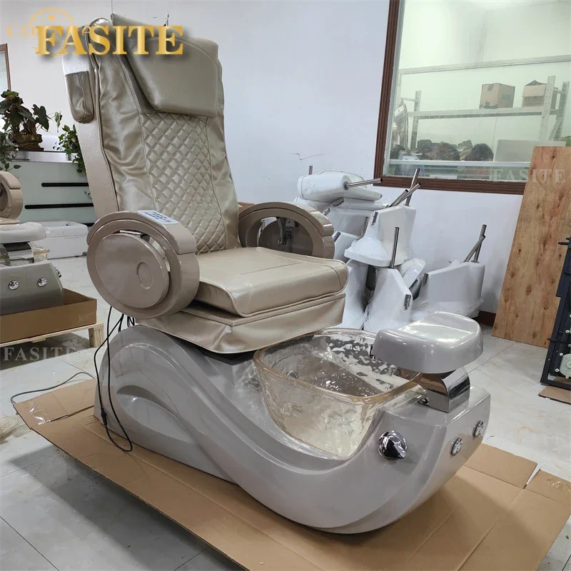 Hot sale good quality luxury electric foot massage chair gold plated acrylic pedicure massage chair for beauty salon