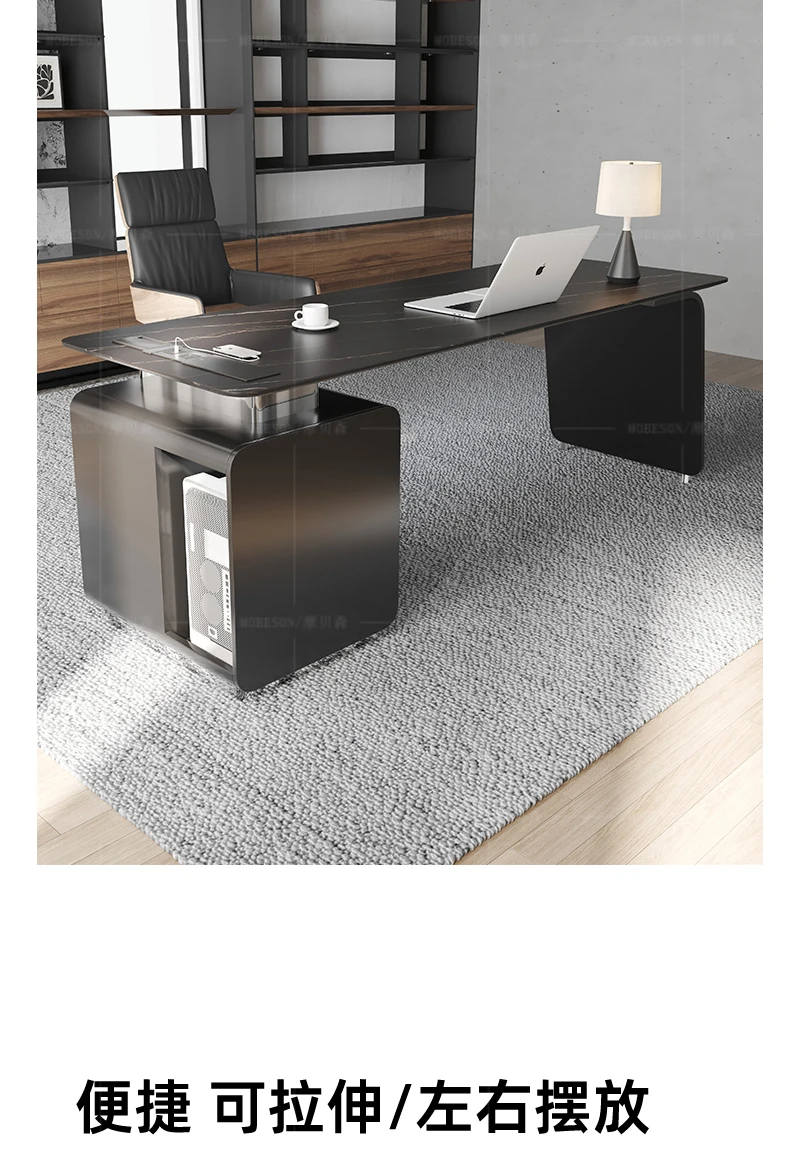 Italian minimalist rock slab living room, long desk, study room, high-end desktop computer desk, work desk, home office desk