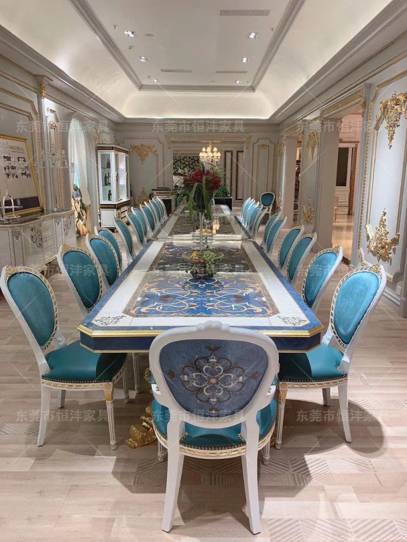 Italian shell-encrusted dining table and chair set French luxury solid wood gold and silver foil carved rectangular table