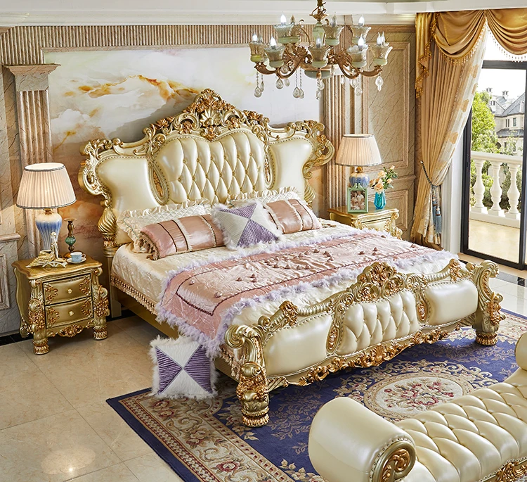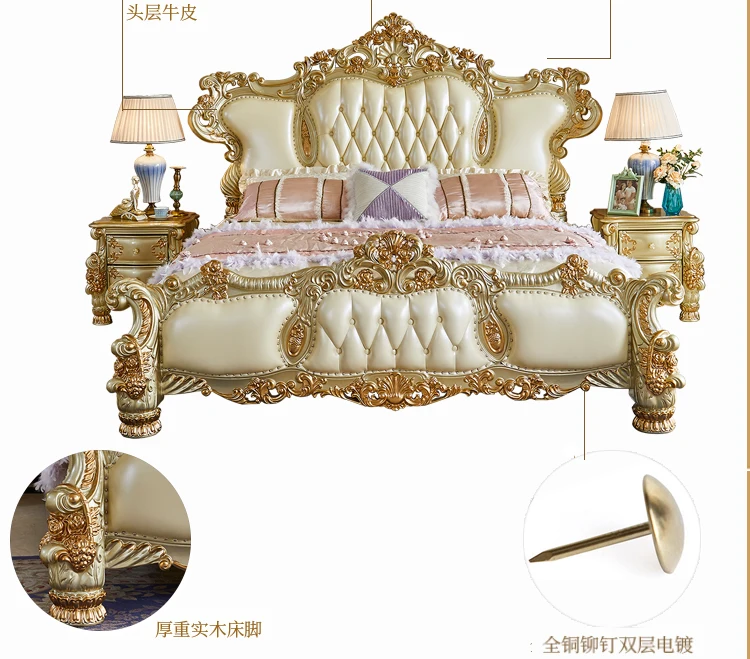 King Size Wood Bed Frame Elegant Tall Headboard Nightstands Queen Bed Frame Luxury Bedroom Cama Moderno Lujo Home Furniture