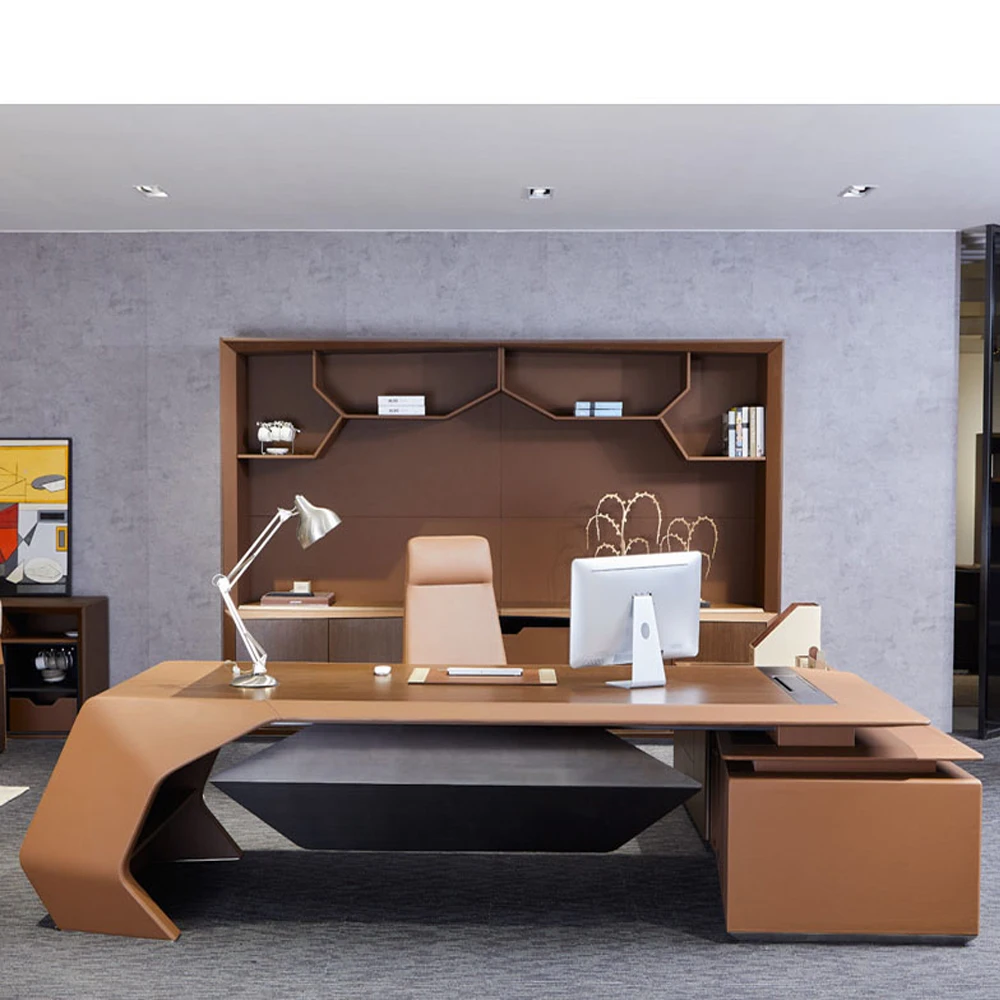 L Shaped Office "Copmuter" Modern Writing Computer Desk Luxury Modern Office Desk With Filing Cabinet 3198*2460*750mm