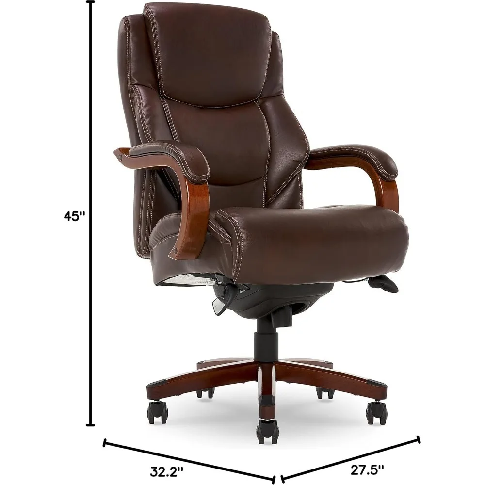 La-Z-Boy Delano Big & Tall Executive Office Chair, High Back Ergonomic Lumbar Support, Bonded Leather, Brown