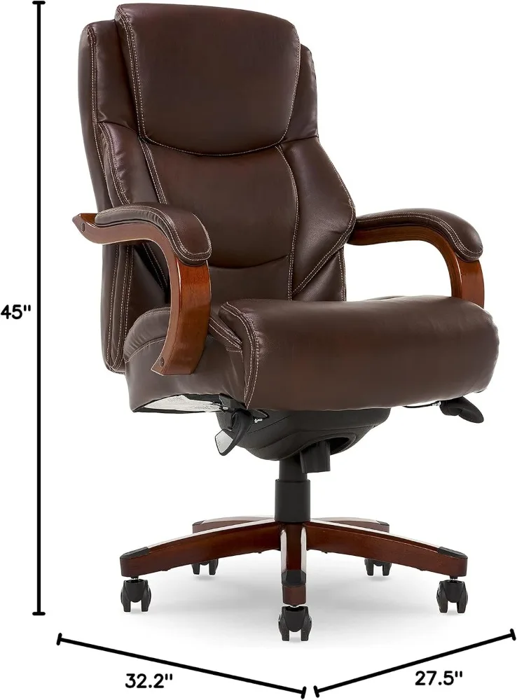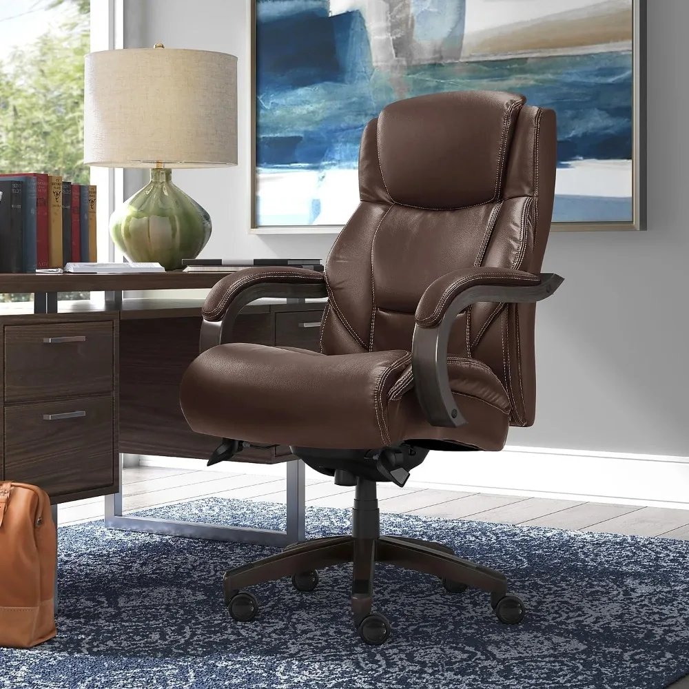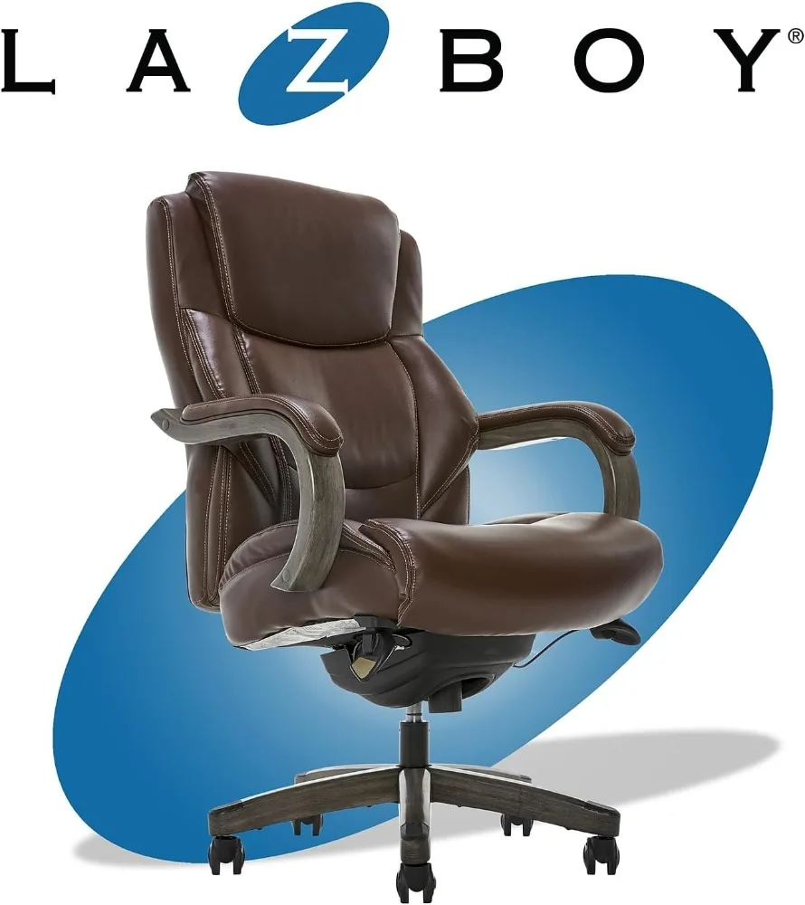 La-Z-Boy Delano Big & Tall Executive Office Chair, High Back Ergonomic Lumbar Support, Bonded Leather, Brown