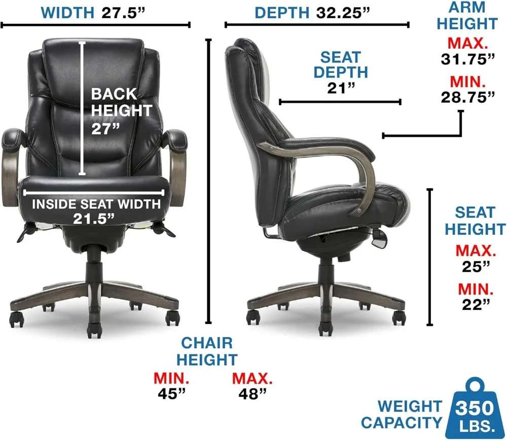 • BIG AND TALL DESIGN: 45- to 48-inch height range and 21-3/4-inch seat width. Sturdy components surpass rigorous BIFMA testing standards and supports up to 350 pounds.