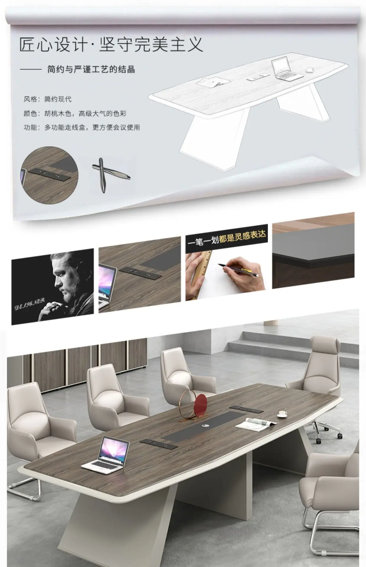 Large conference table and chair combination long table, simple and modern painted double-layer conference room, meeting negotia