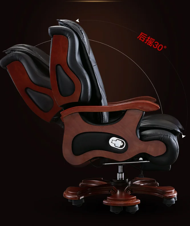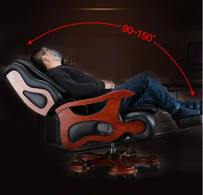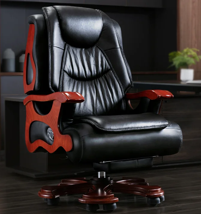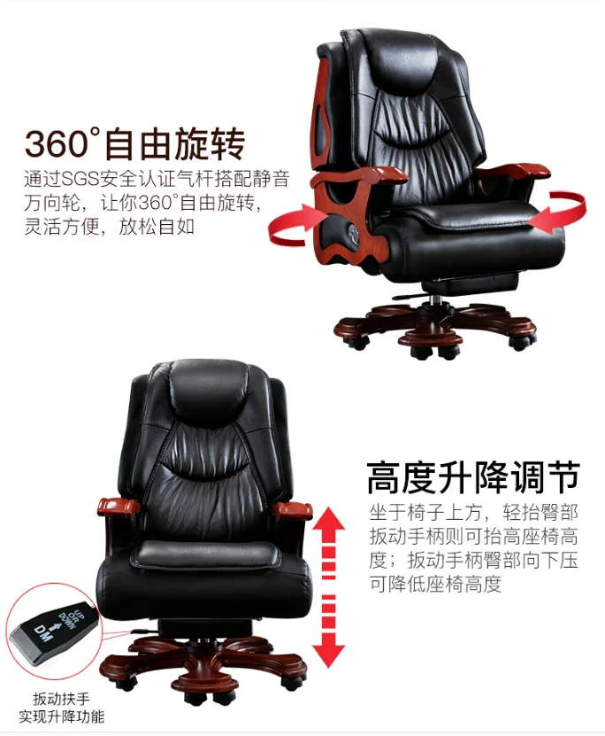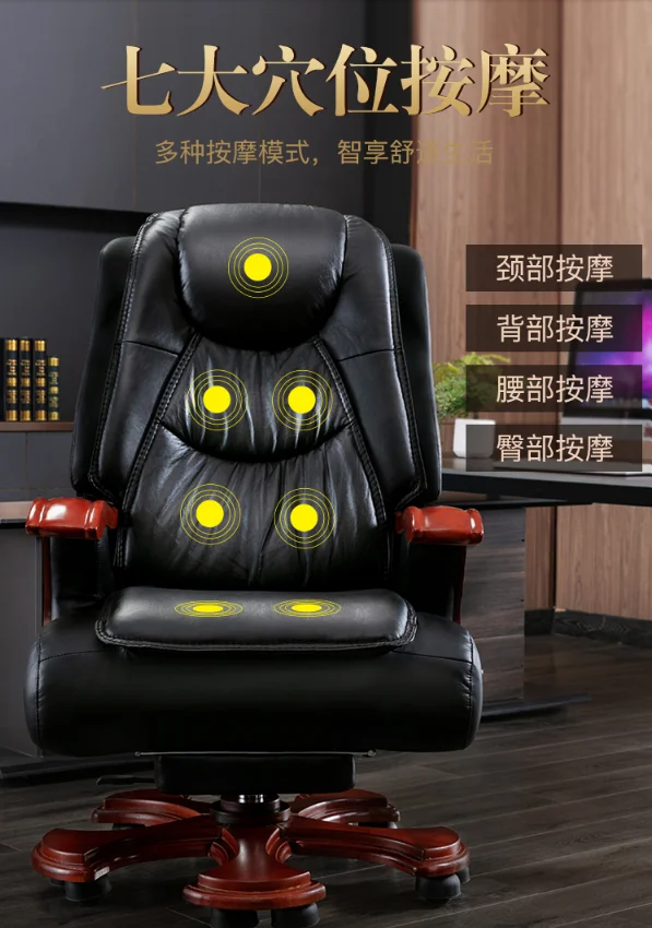 Leather boss chair home business office chair reclining lifting massage computer chair solid wood rotating chair big class chair
