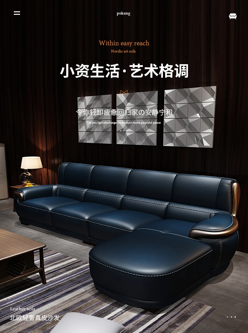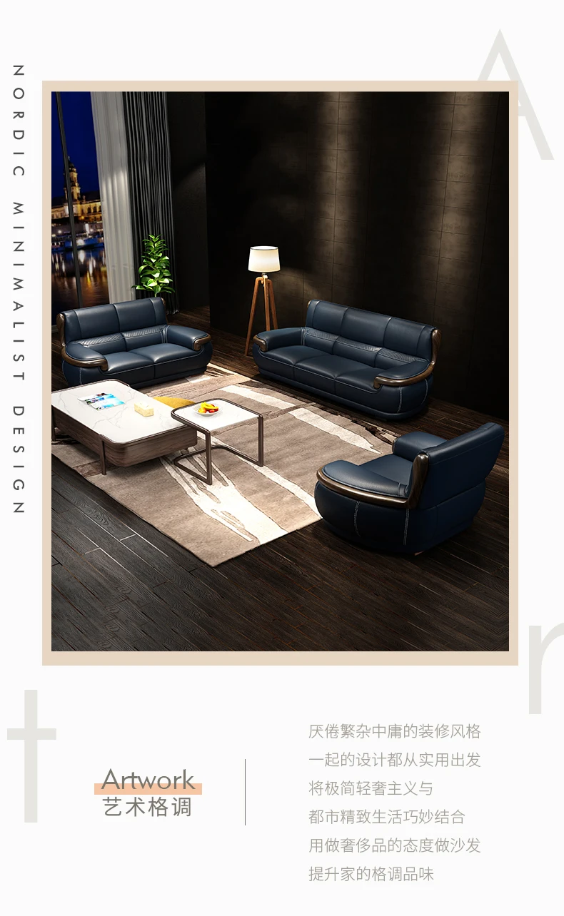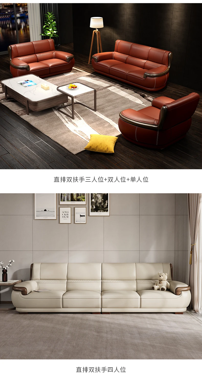 Leather sofa Nordic first layer cowhide modern simple living room three four people straight row corner small apartment