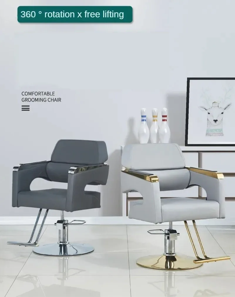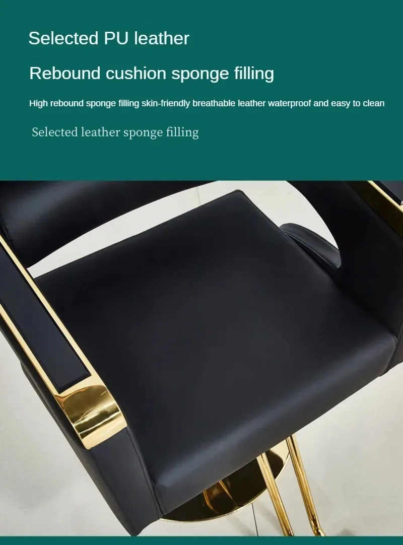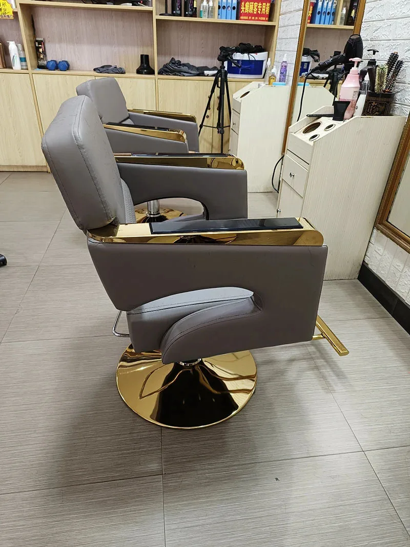 Light Luxury Stainless Steel Barber Chair Professional Salon Chairs for Hair Stylist Beauty Salon Lift Hairdressing Tattoo Chair