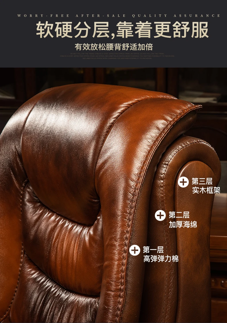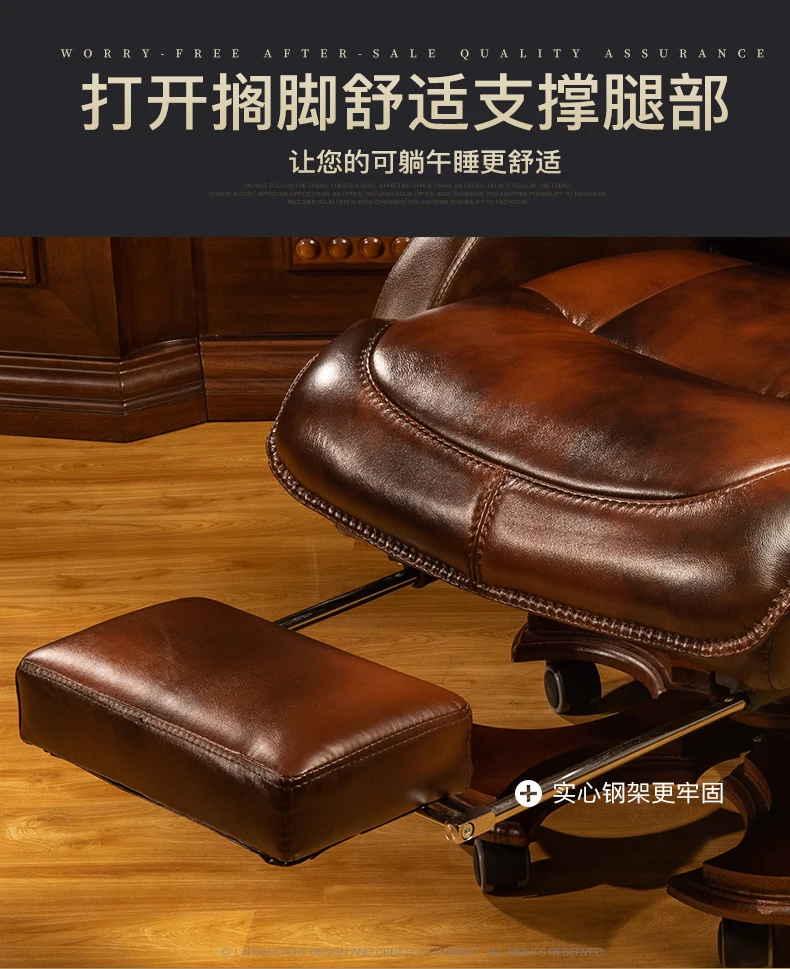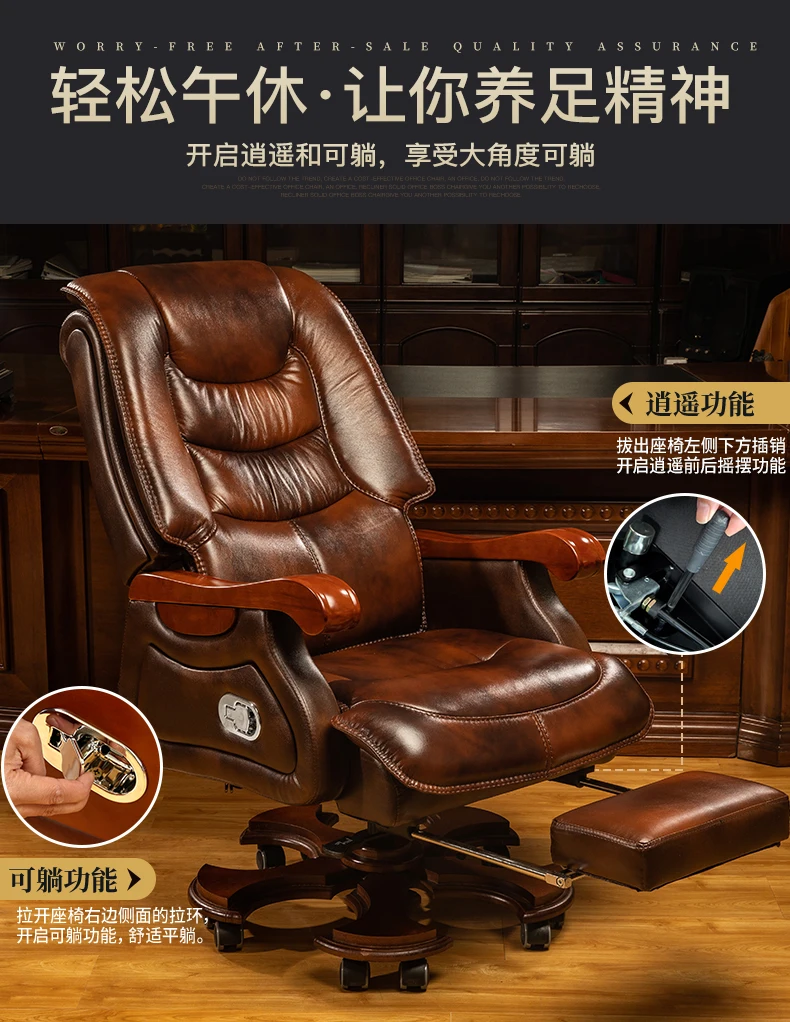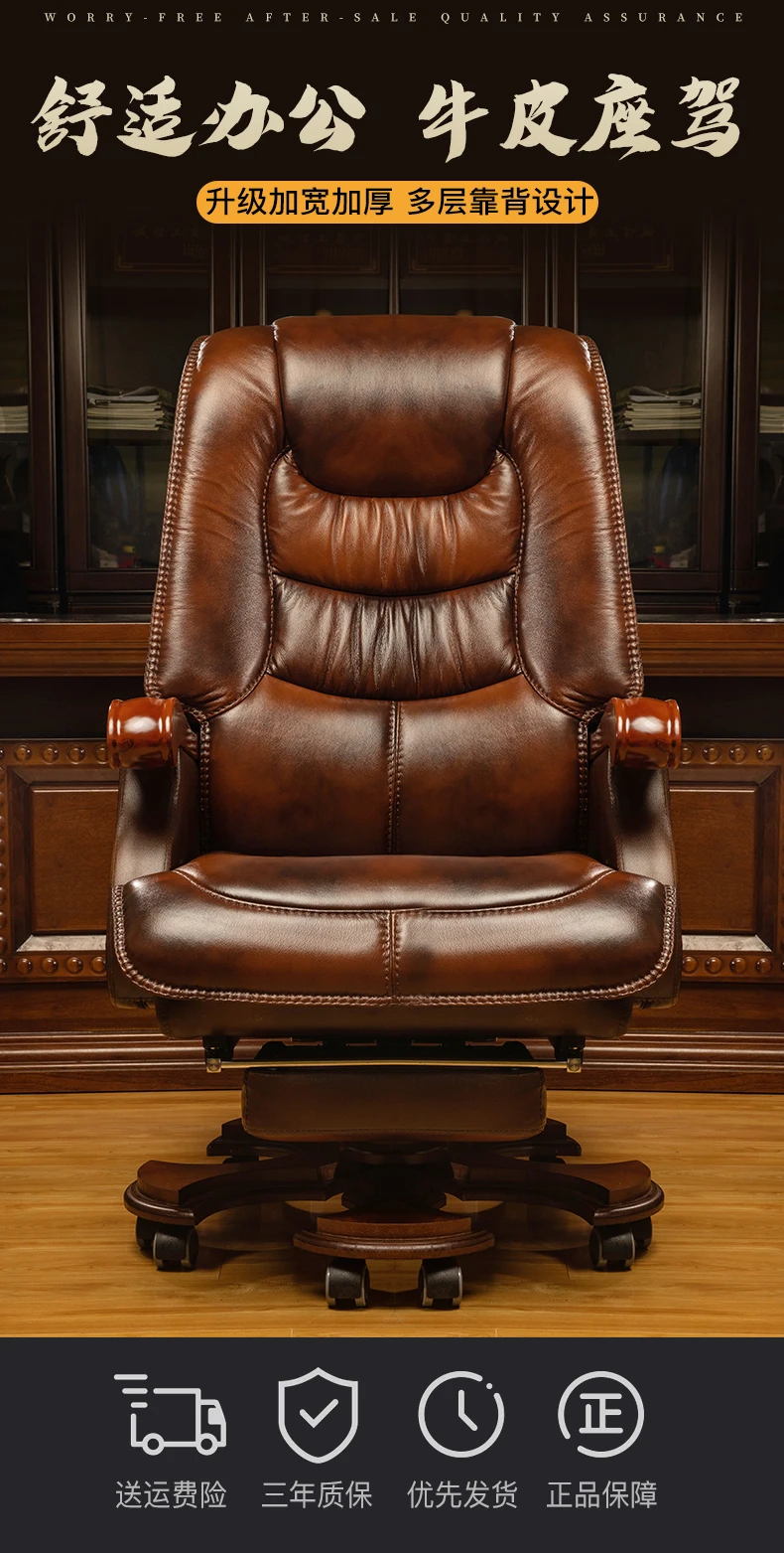 Luxury Leather Office Chair Brown Durable Designer Solid Long Sitting Armchair Elastic Massage Silla Gamer Furniture Decoration