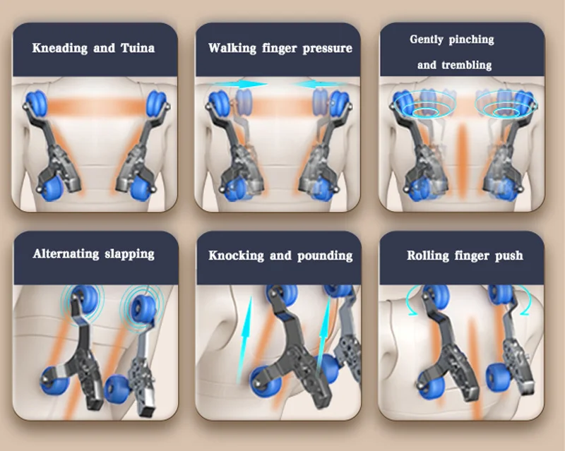 The back cushion has heating function; lDesigned with airbag massage on the side of hips and legs, rolling massage on hip and sole;