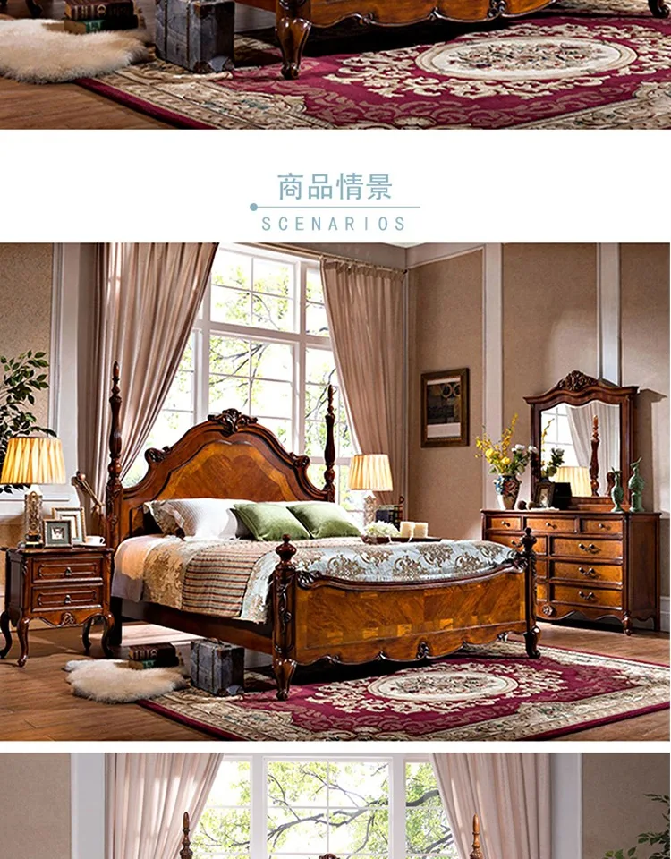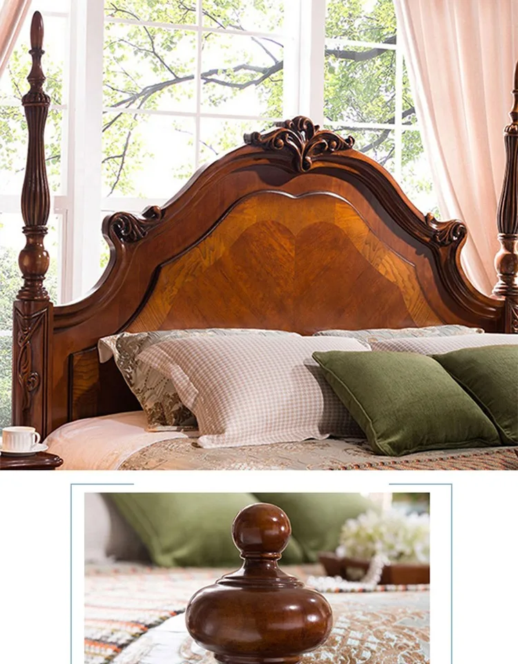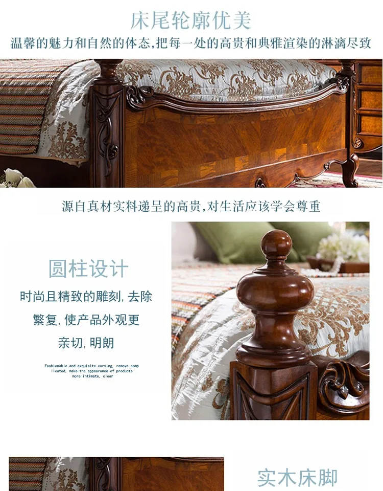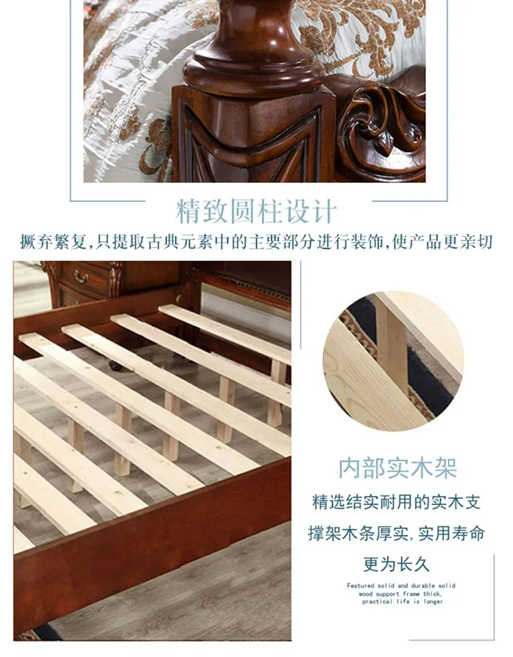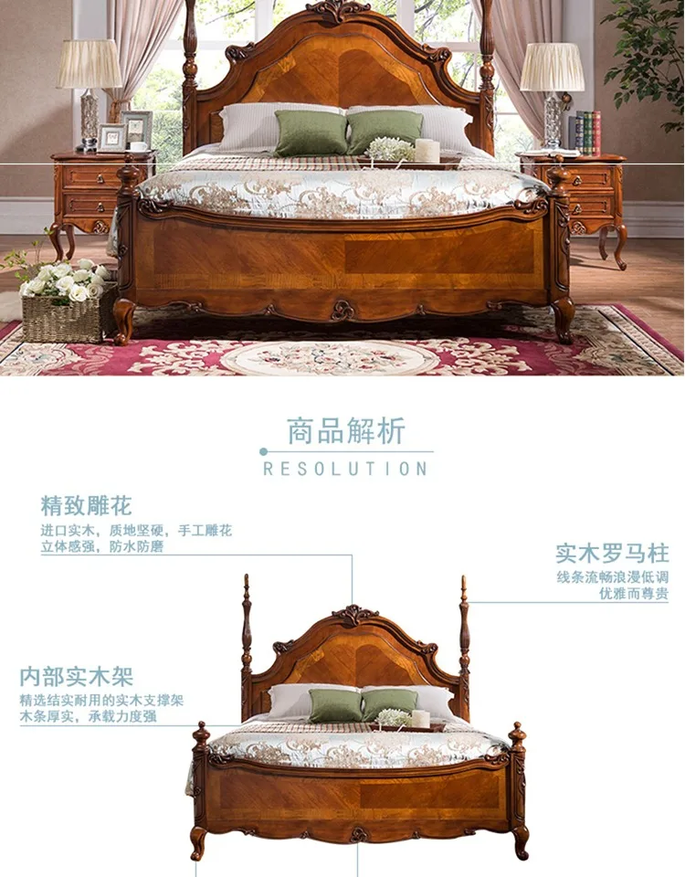 Meng Han's original handmade European style carved solid wood king bed, 1.8-meter American solid wood wedding bed