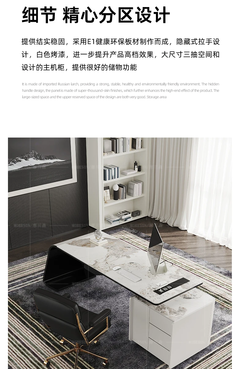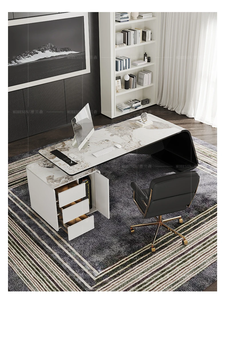 Minimalist living room large long desk light luxury modern study rock slab computer desk office table chair home