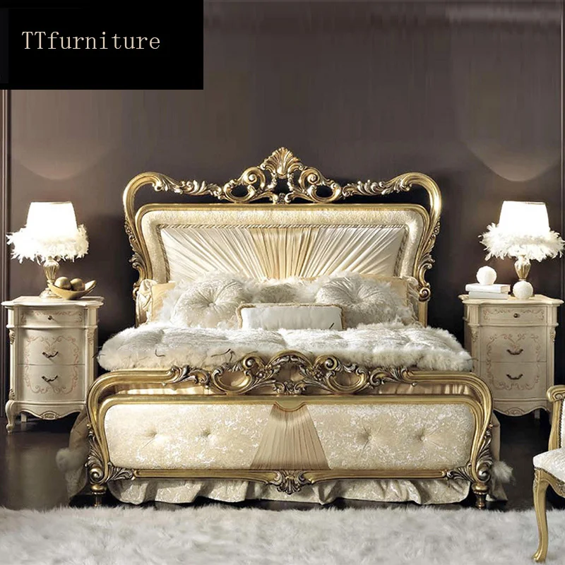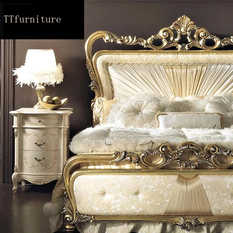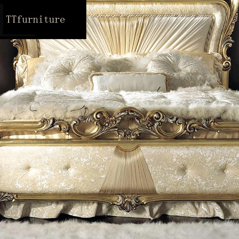 modern european Italian solid wood bed Fashion Carved luxurious french bedroom set furniture king size jxj47