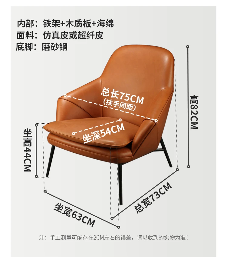 Premium Materials: The use of brown leather for the backrest and seat cushion lends a warm and luxurious feel, elevating the overall aesthetic.