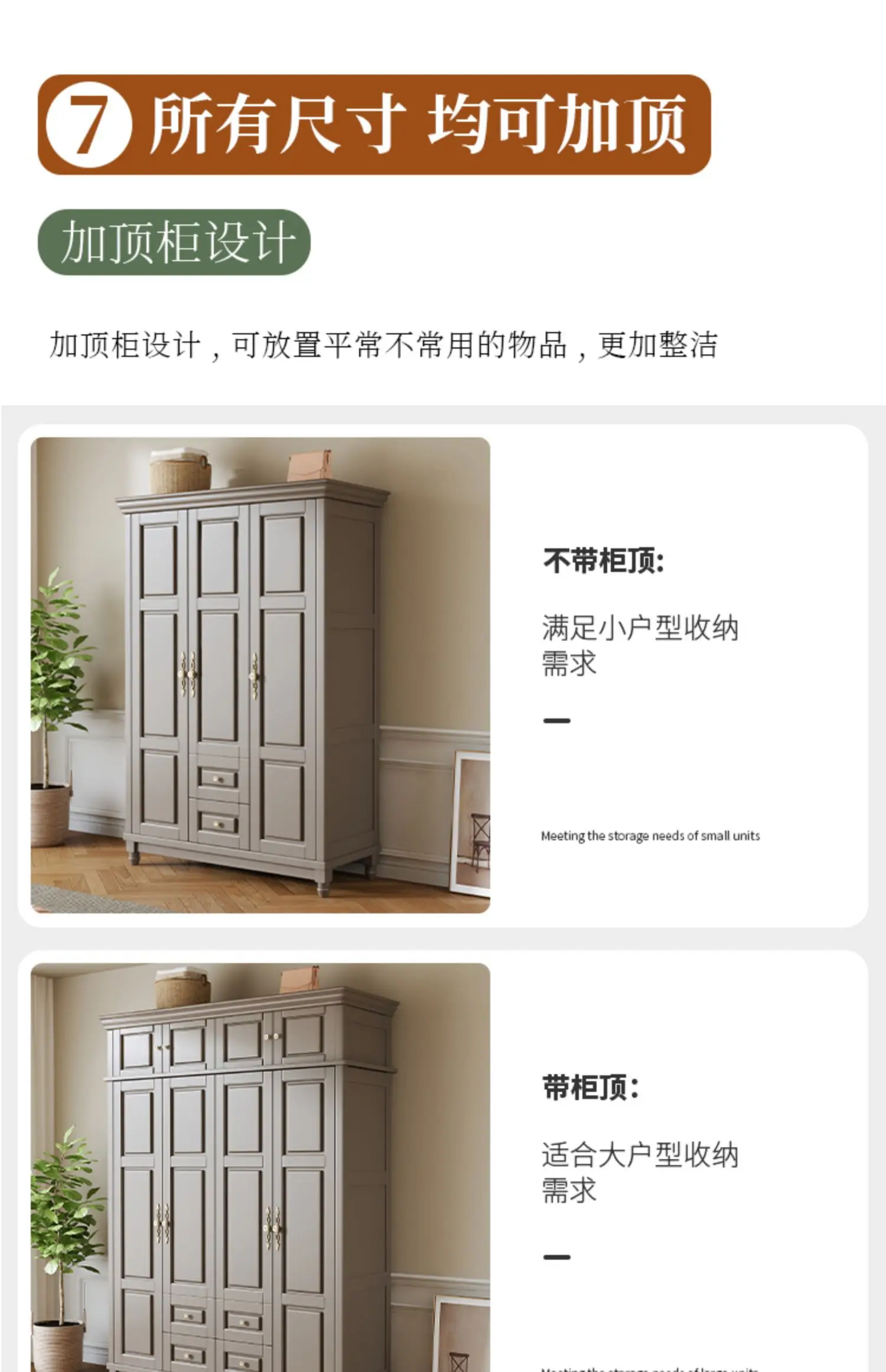 Modern simple American solid wood wardrobe home bedroom light luxury door storage wardrobe top cabinet