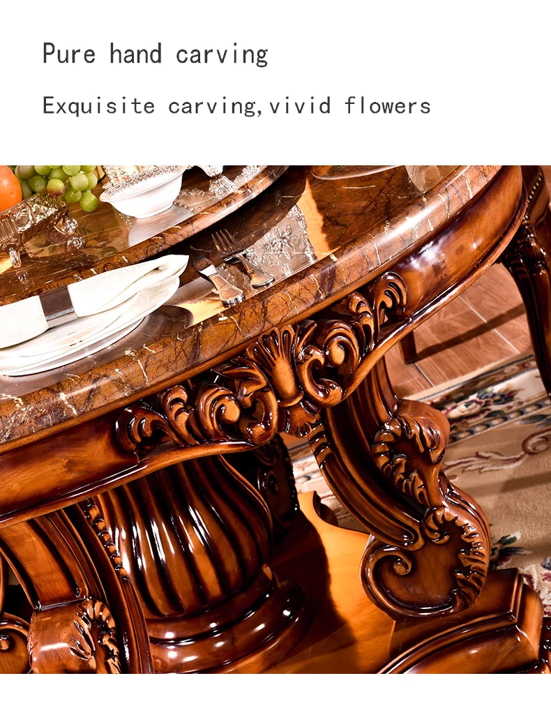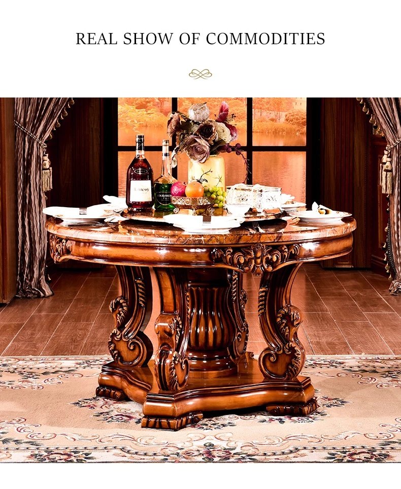 Modern Style Marble Italian Dining Table, 100% Solid Wood Italy Style Luxury round Dining Table set stn001