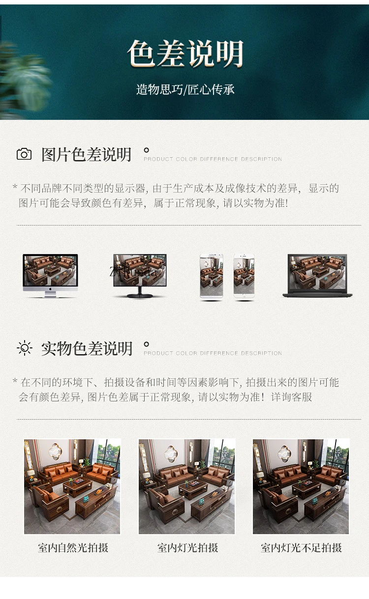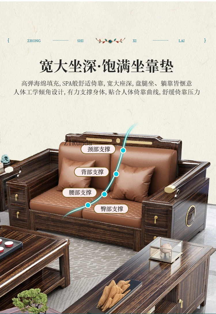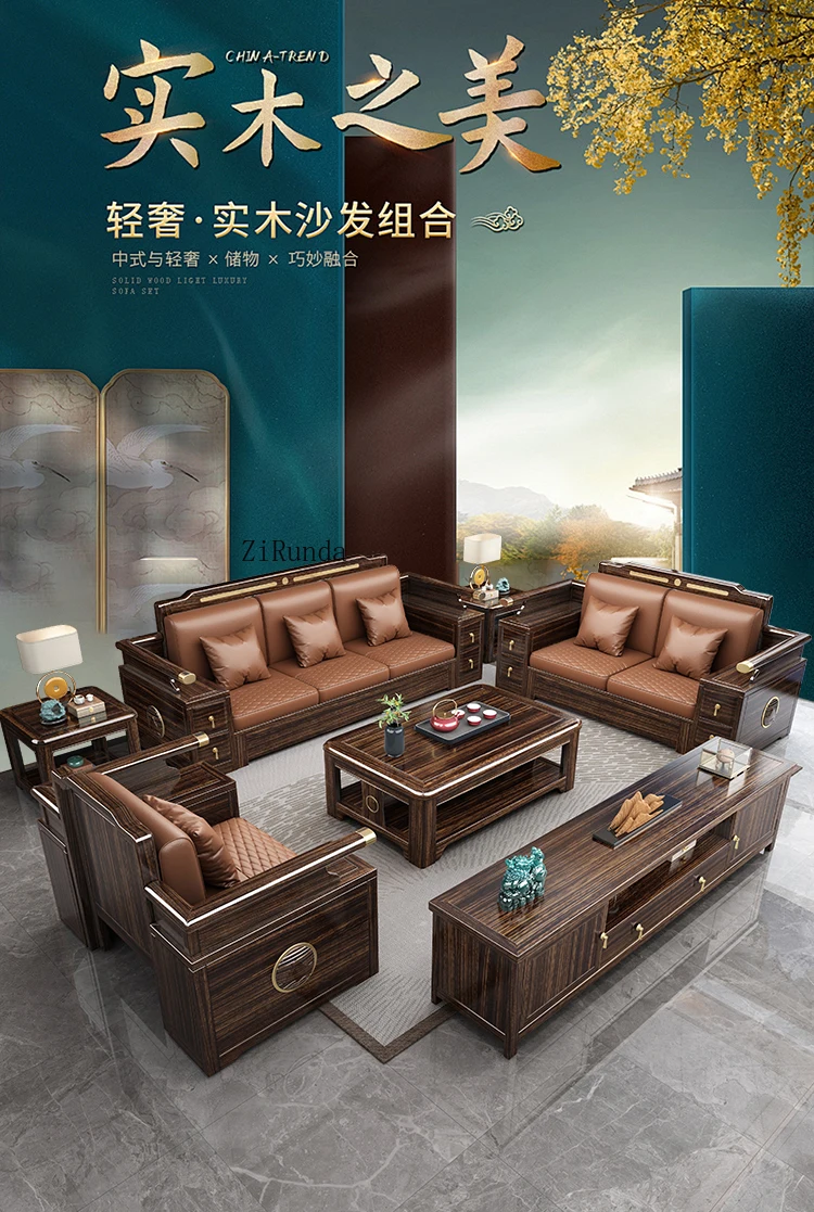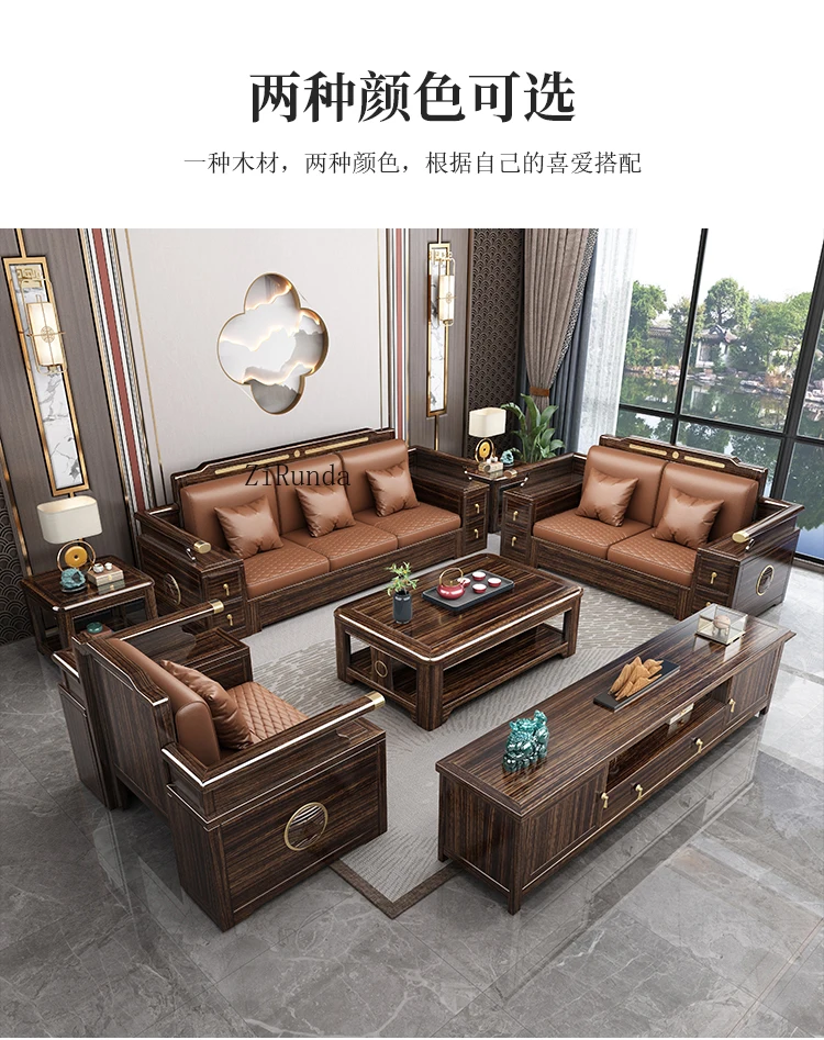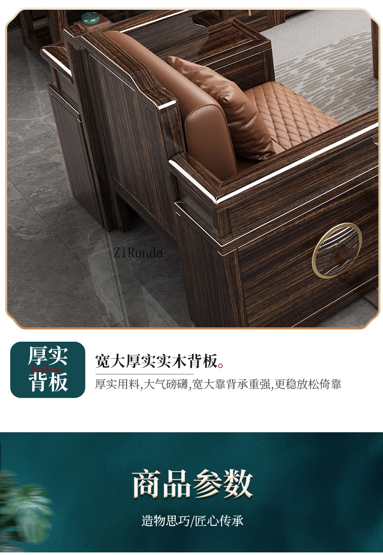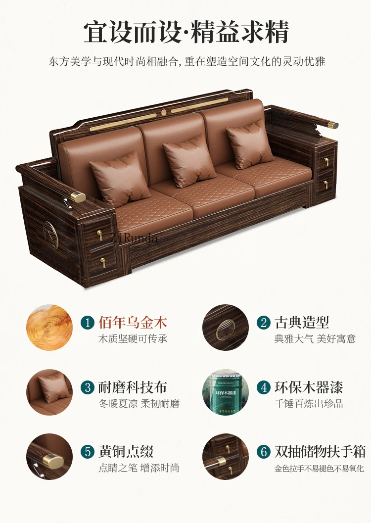New Chinese style ebony all solid wood sofa combination villa living room, small and large unit storage sofa furniture