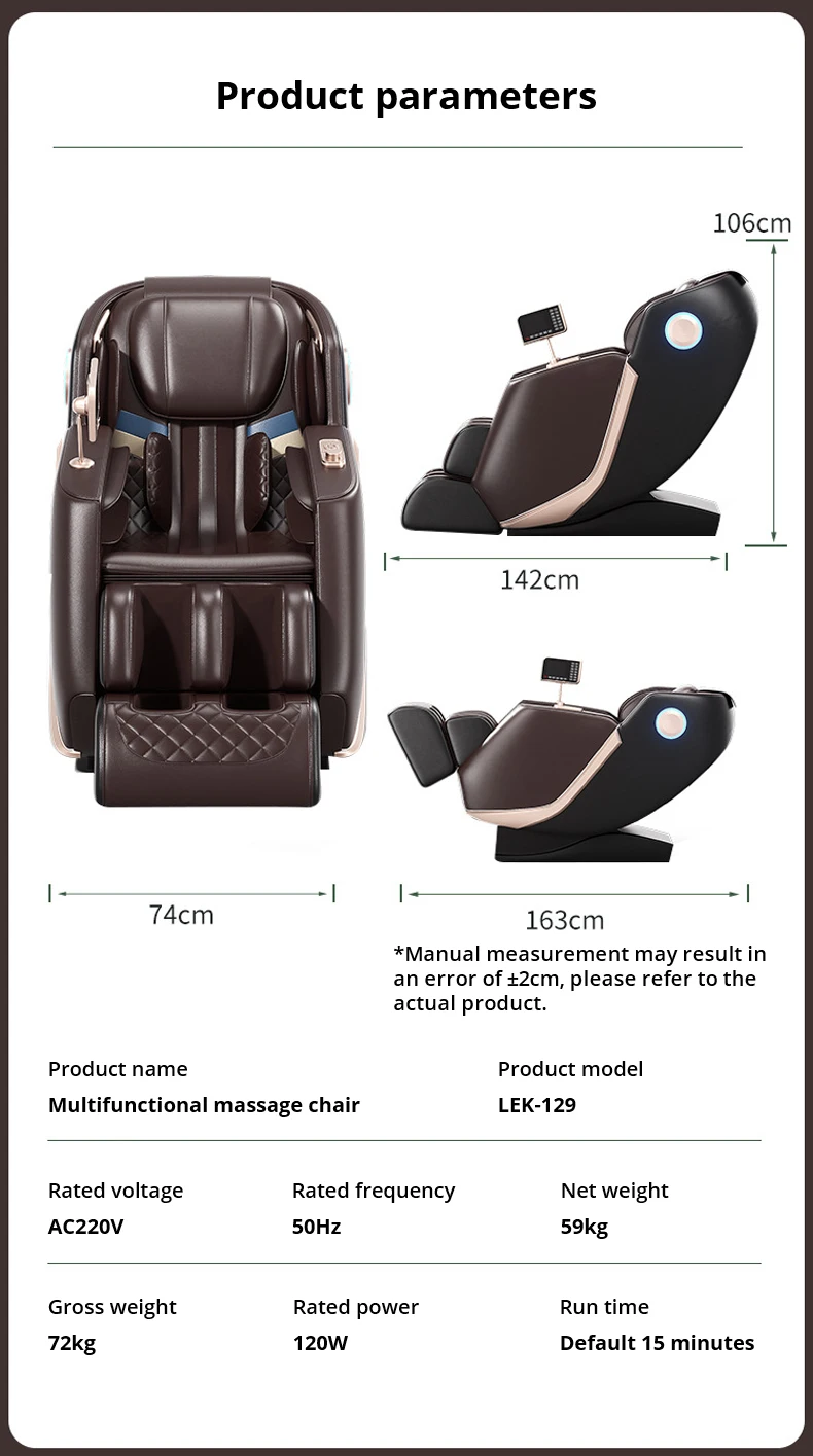Because the massage chair is large, please be sure to measure the door width before purchasing to ensure that the product can be smoothly entered. If you have any questions, please consult customer service for help~