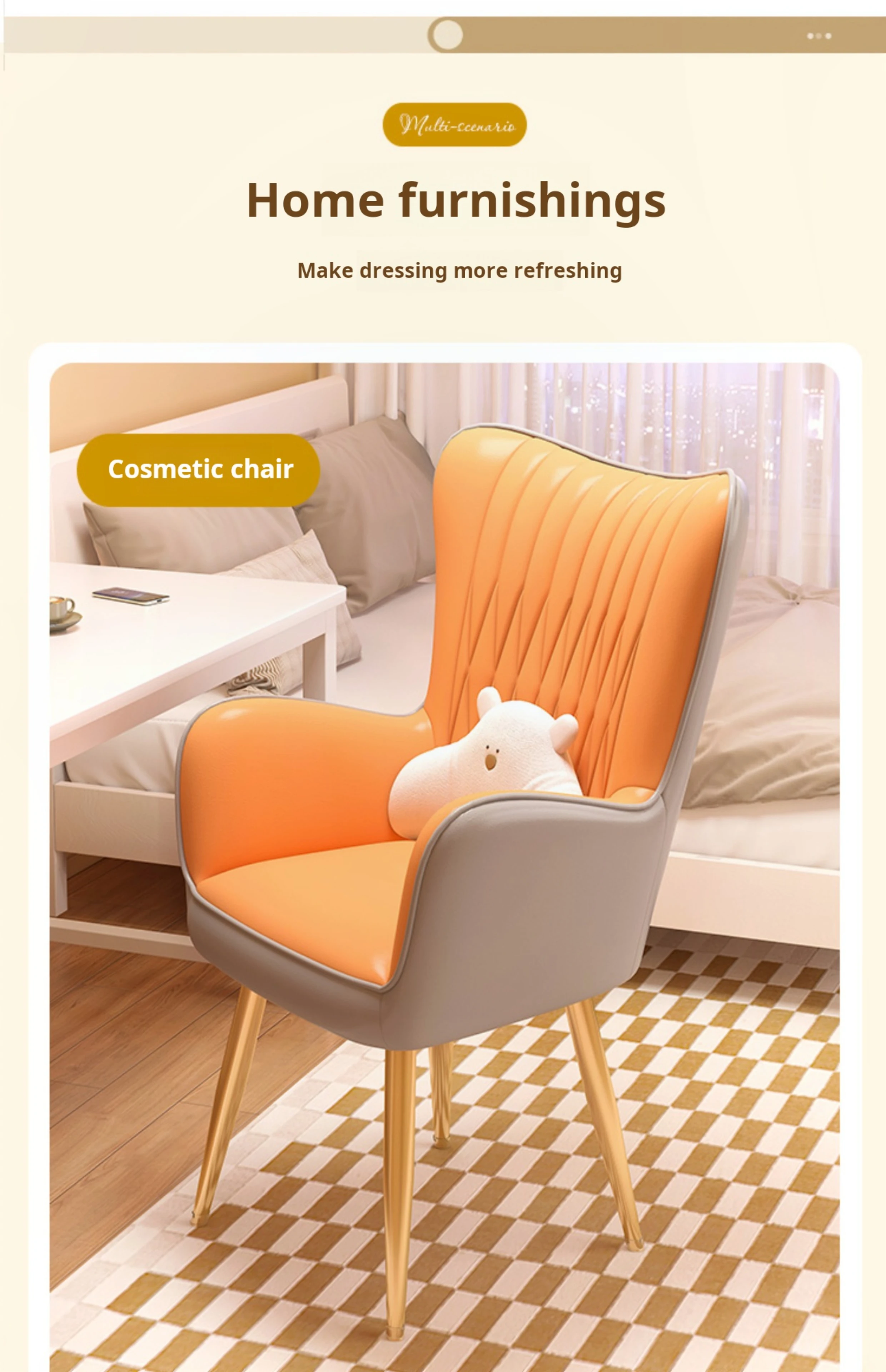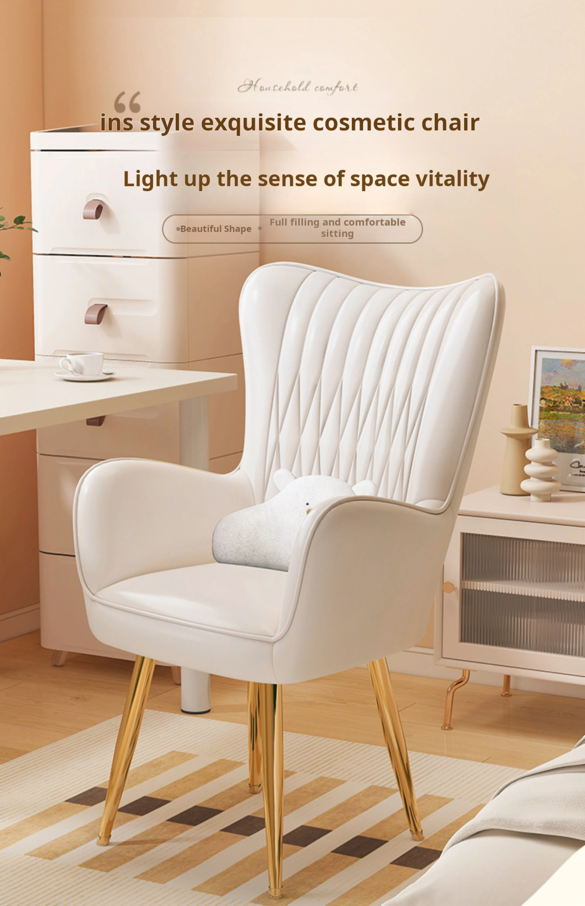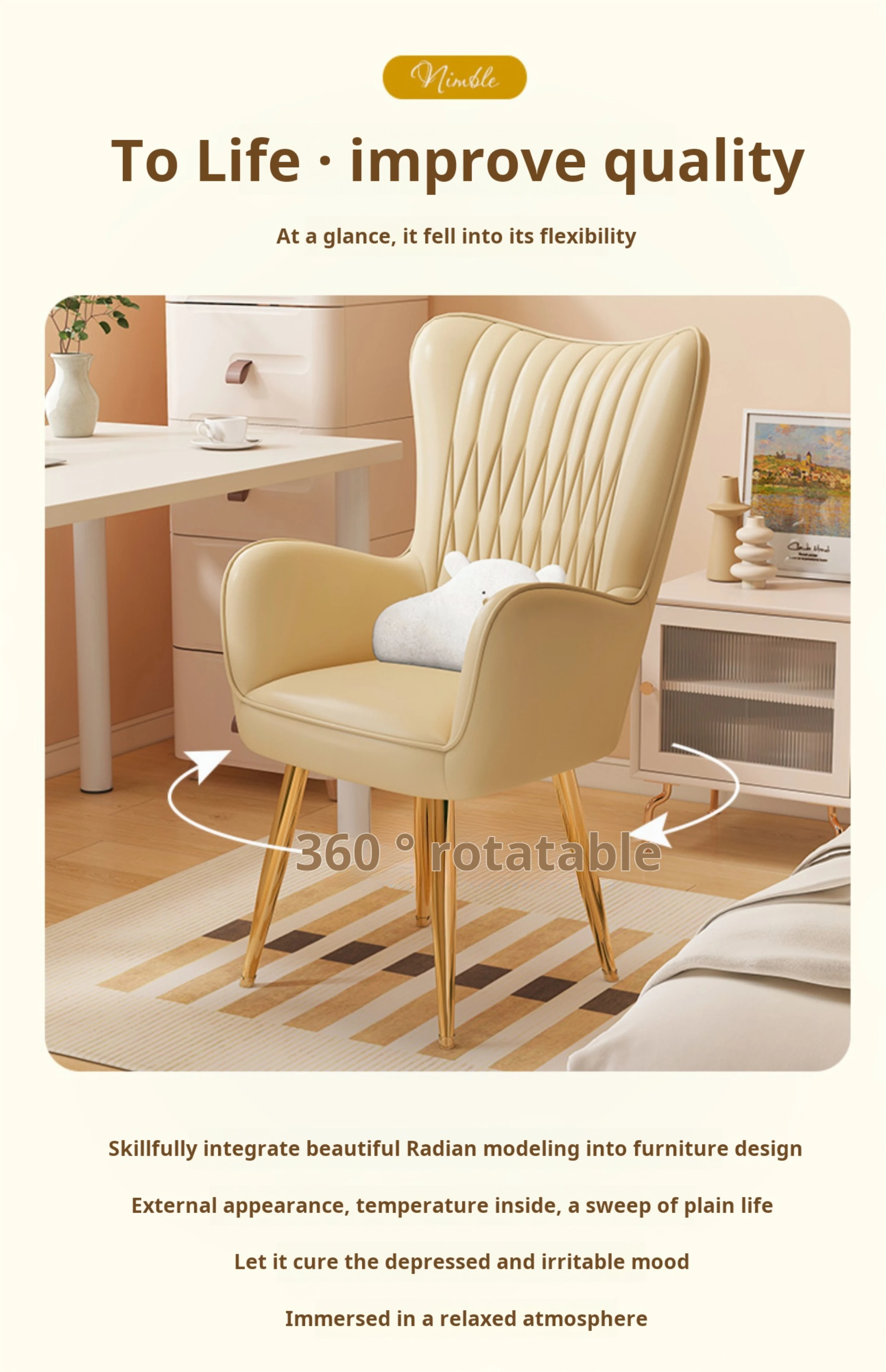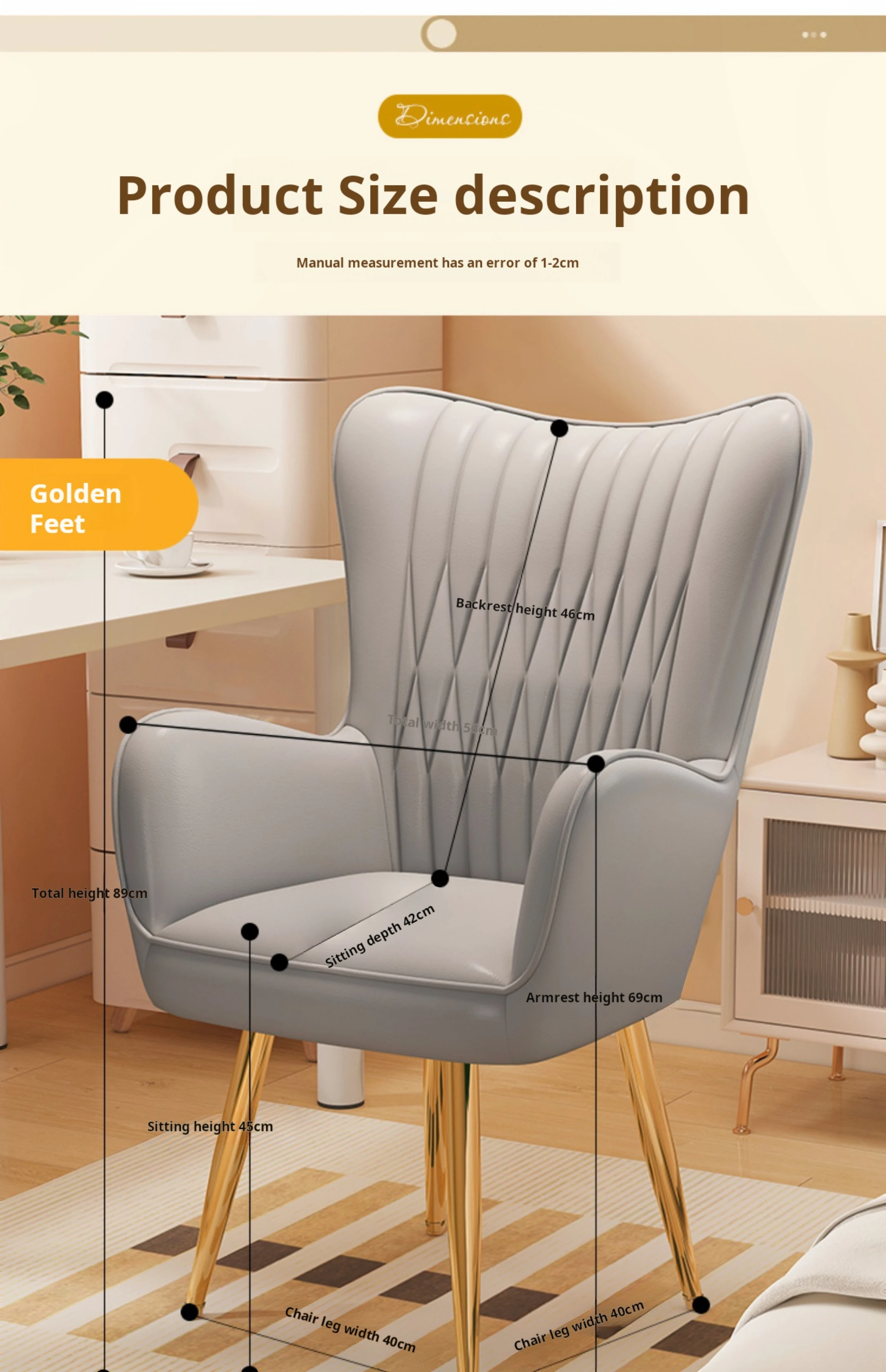 Nordic Luxury Leather Living Room Armchairs Comfortable backrest Chair Lazy Sofa High-End Nail Salon Makeup Chair Stool