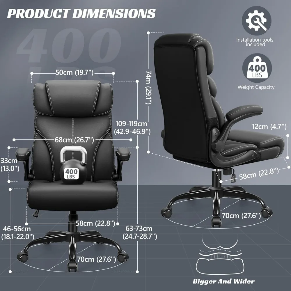 • Reliable Mobility and Durable:   home desk chairs are equipped with silent PU casters that are lightweight and flexible, protecting the floor. Robust SGS-certified three-level air rod and reinforced explosion-proof base make this leather office chair with wheels and arms support up to 400 pounds for enhanced safety, stability, and longevity.