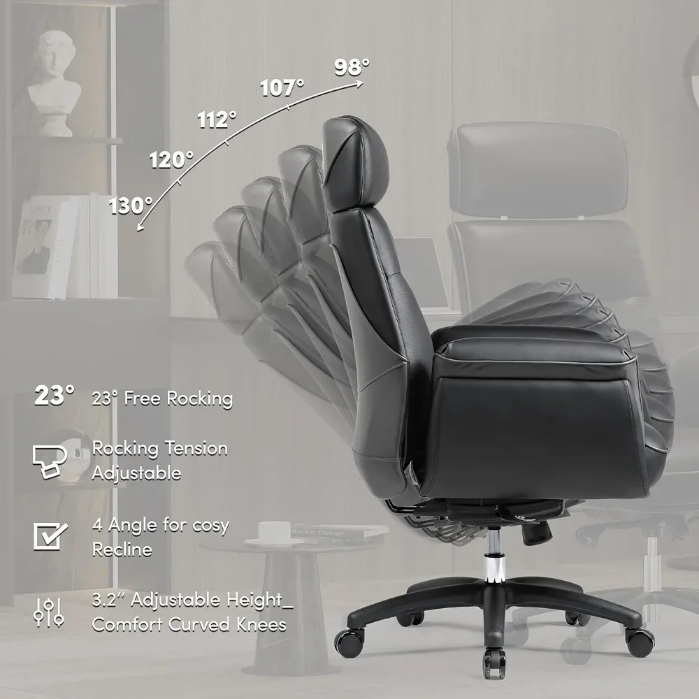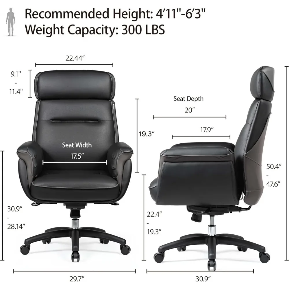 - 【Ergonomic & Thoughtful Adjustable Function】- S-shaped high backrest fully supports the spine and cultivates a healthy sitting posture. Executive Chair can be adjusted from 19-22" height, 2.4" headrest height adjustment for different heights. High back office chair's backrest angle can be adjusted between 90° and 130° to switch from work to a comfortable nap. 360° swivel and smooth casters allow you to play and work freely in your space.