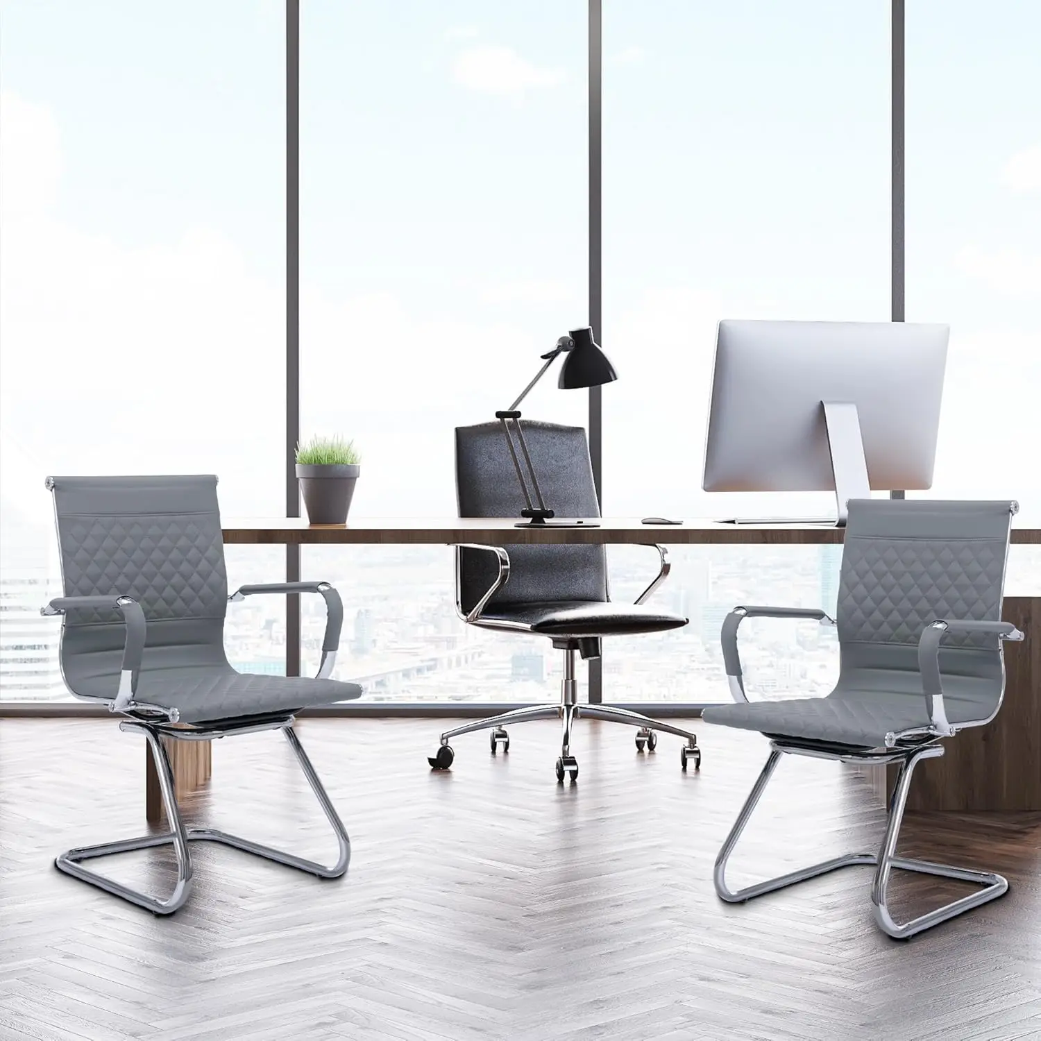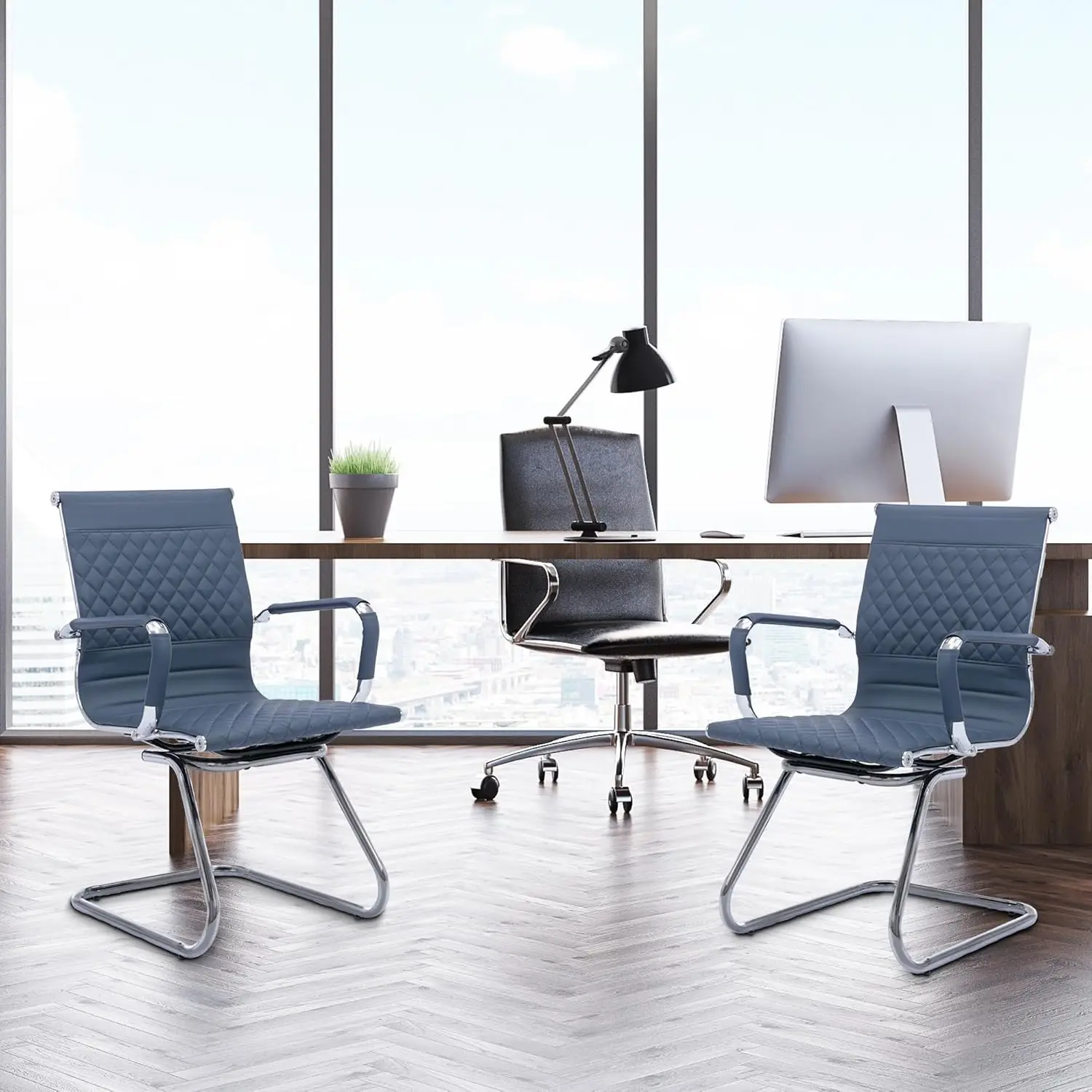 Office Guest Chairs Reception Chairs Waiting Room Chairs Set of 2 Conference Room with Mid Back, Modern PU Leather Desk