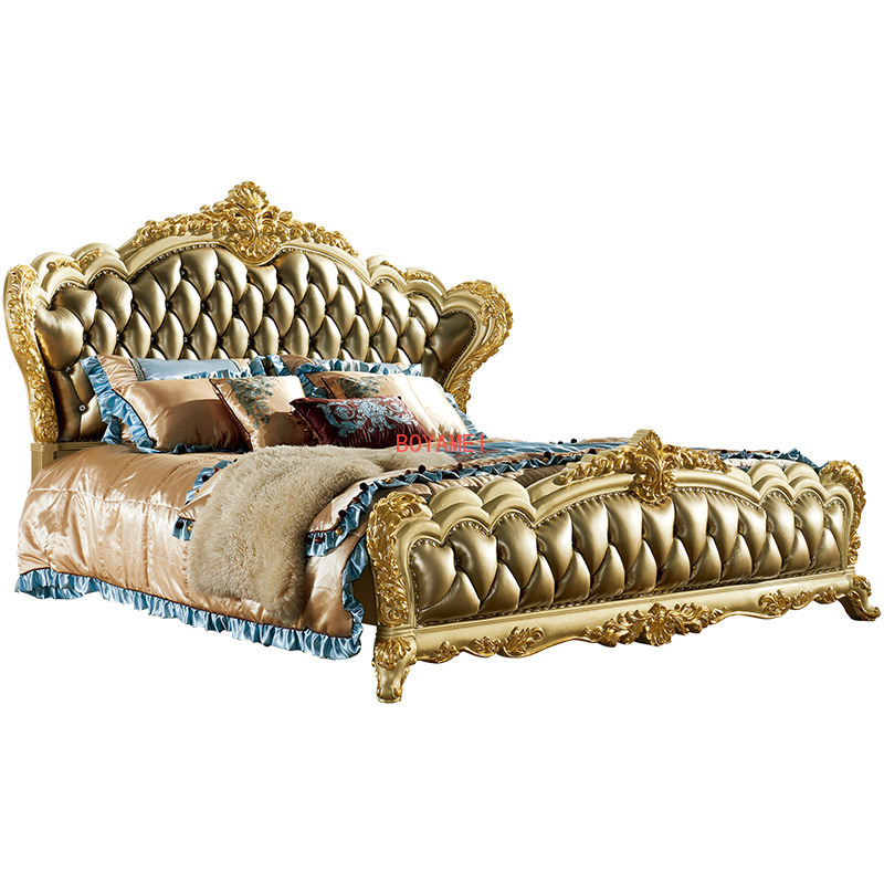 Pafia European Villa Leather Bed 1.8m Big Bed Solid Wood Carved Bed Wholesale