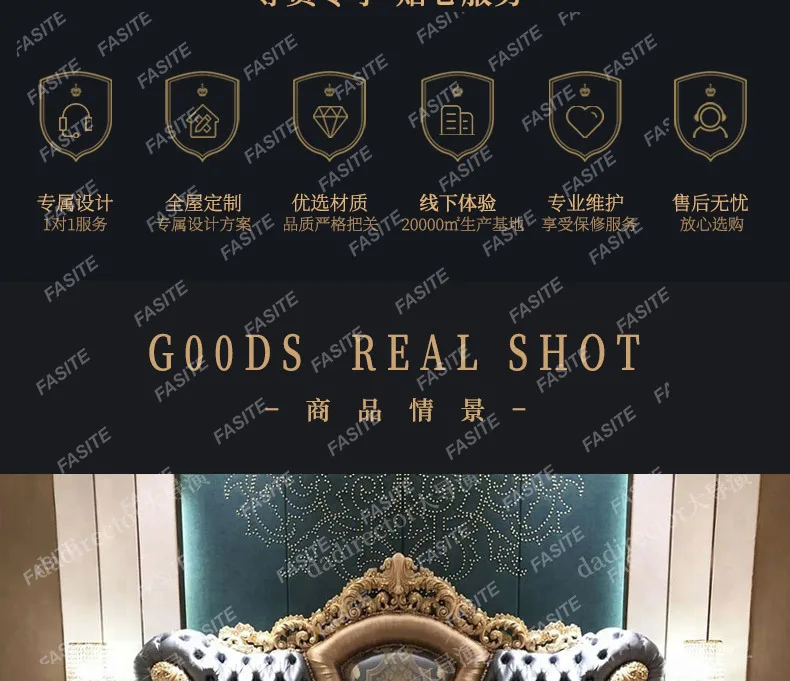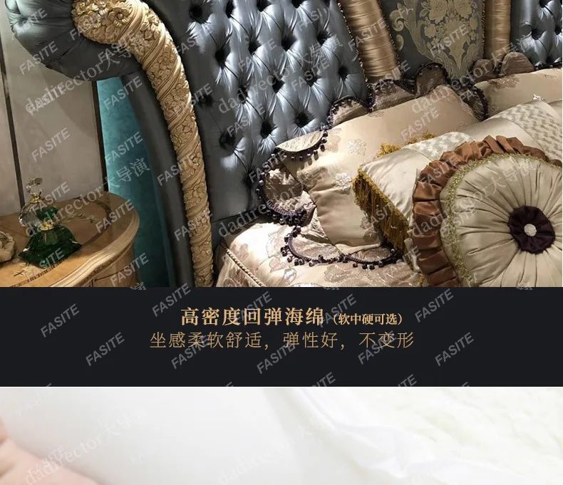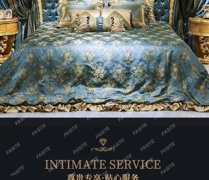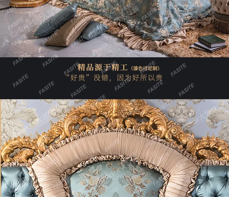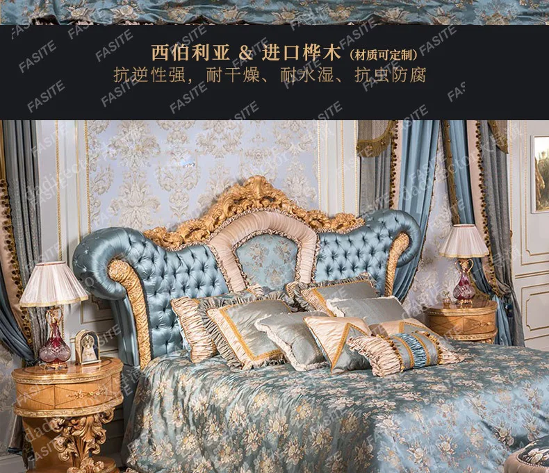 Palace European style solid wood carved bed French luxury fabric double wedding bed Baroque villa furniture