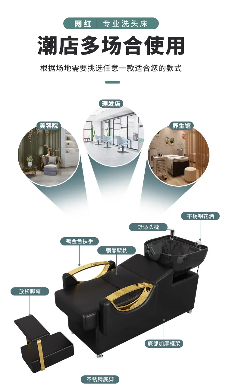 Professionals Hairdressers Hair Bed Shampoo Styling Stations Gold Hair Bed Spa Supplies Muebles Para Salon De Belleza Furniture