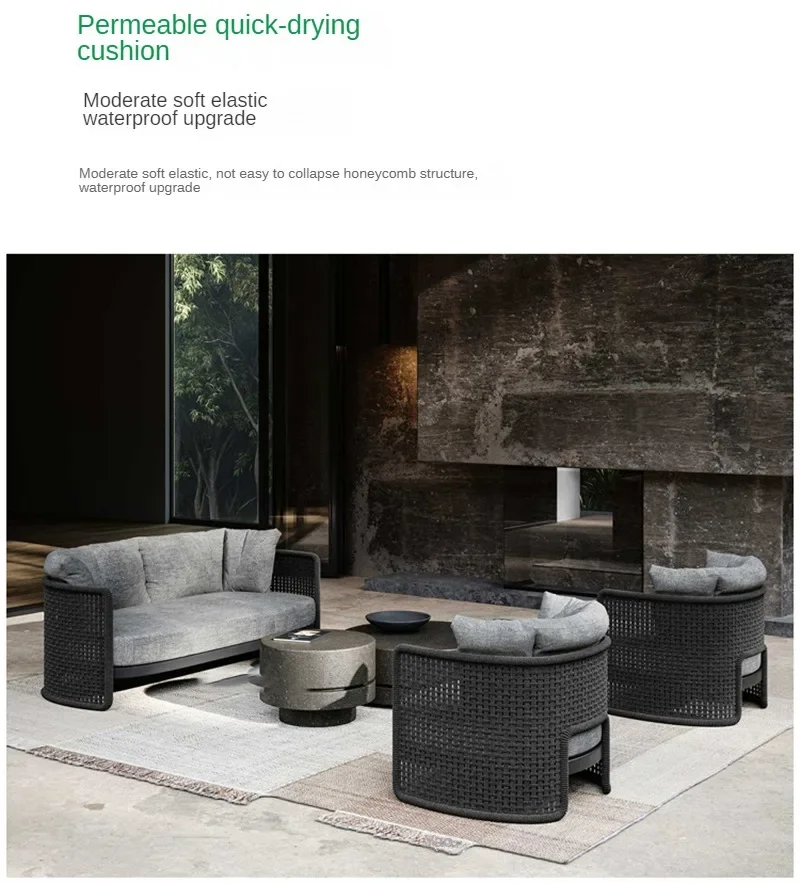Rainproof and Sunproof Retro Rope Sofa Chair Nordic Rattan Outdoor Sofas Luxury Garden Furniture Leisure Home Balcony Patio Set