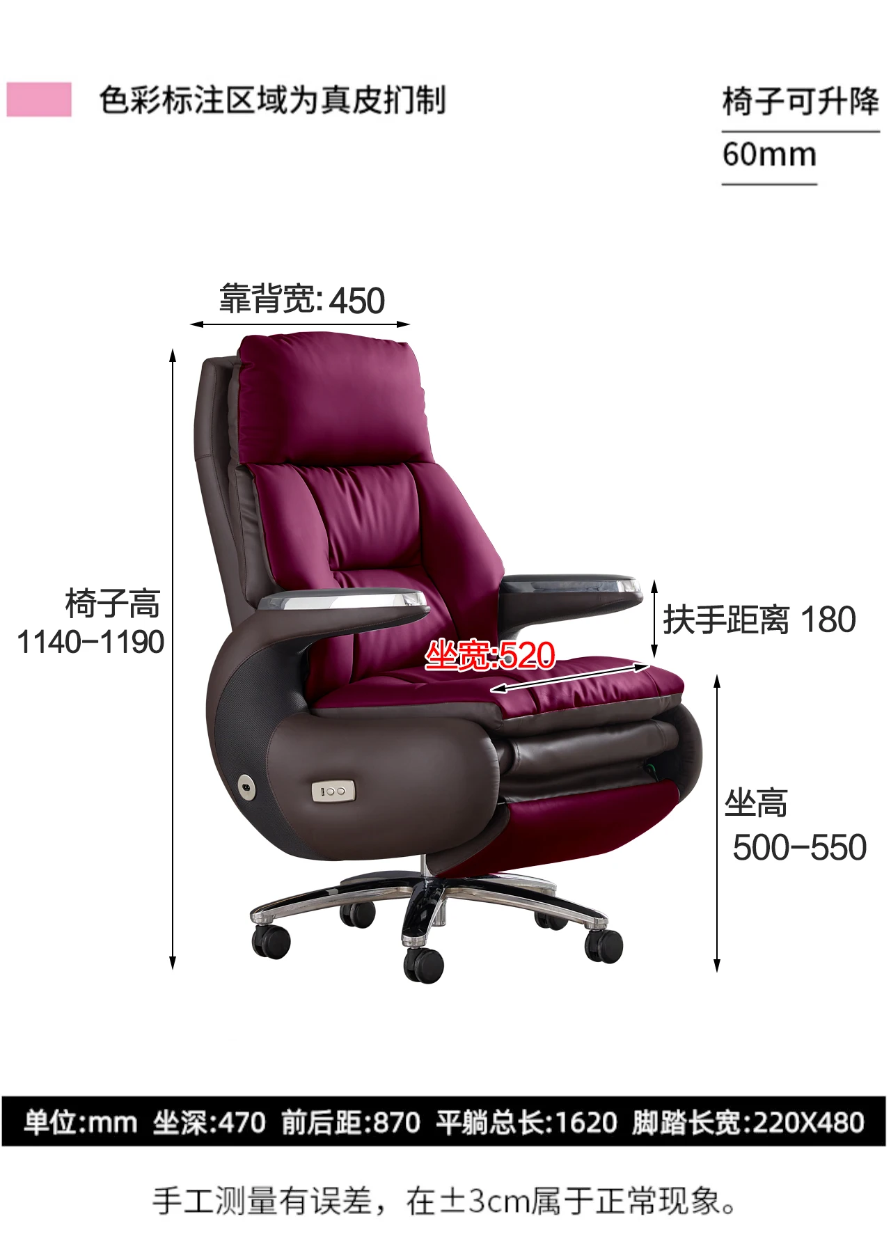 Backrest Height: <125mm->800mm