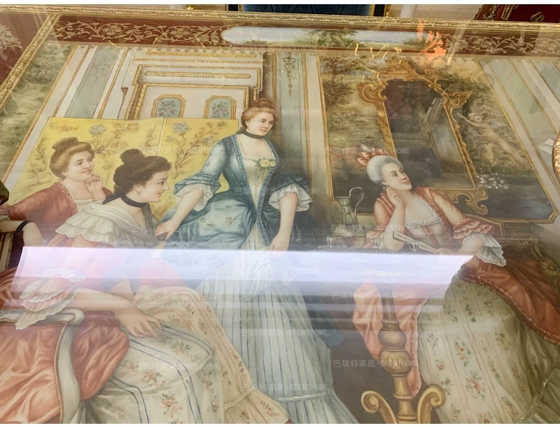Restaurant furniture European carving metal all-copper ceramic painting 2.8 meters long dining table red ceramic villa mansion