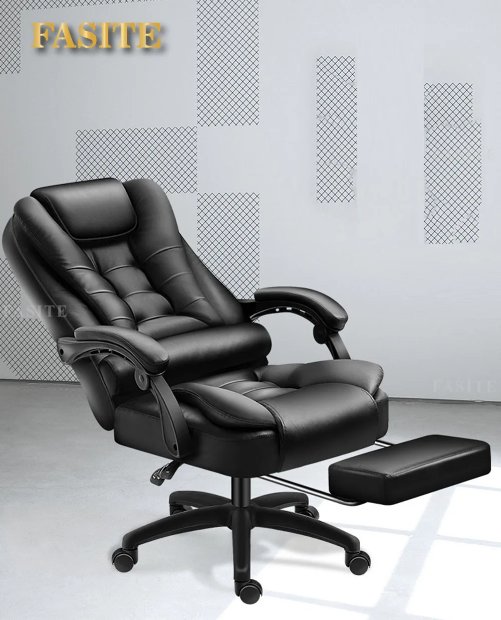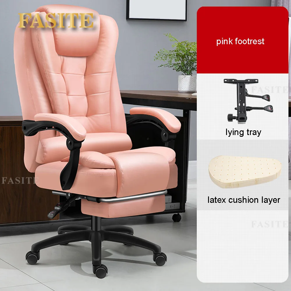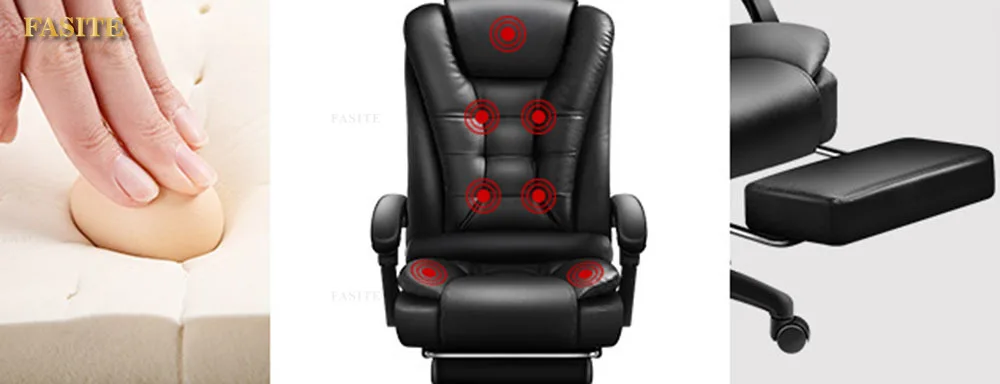Rotatable Massage Office Chair High Back Latex Cushion 7 O'Clock Leather Comfortable With Footrest Internet Cafe Gaming Stool