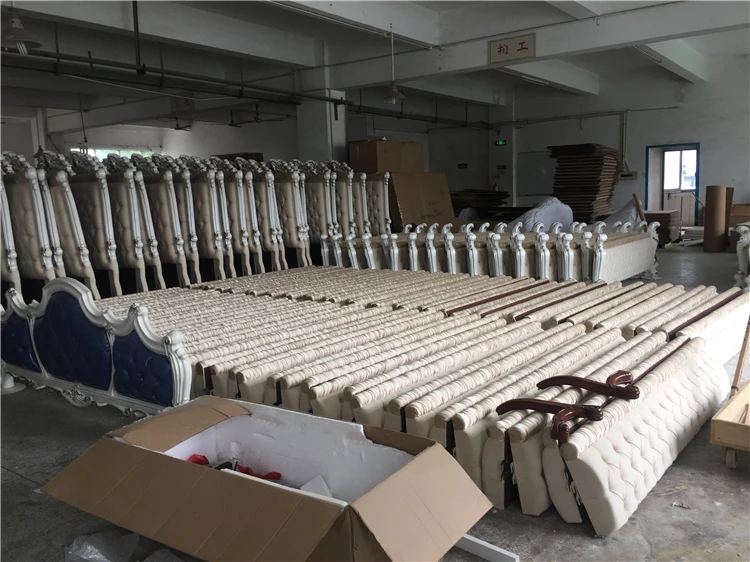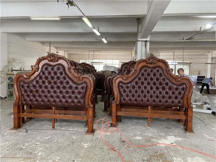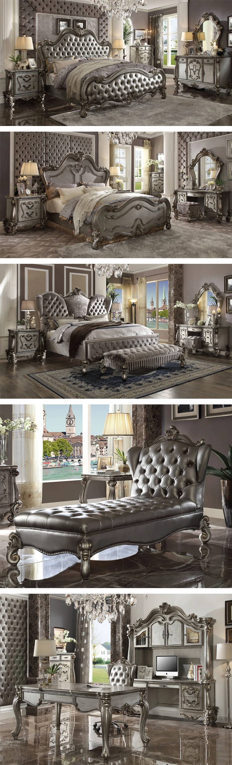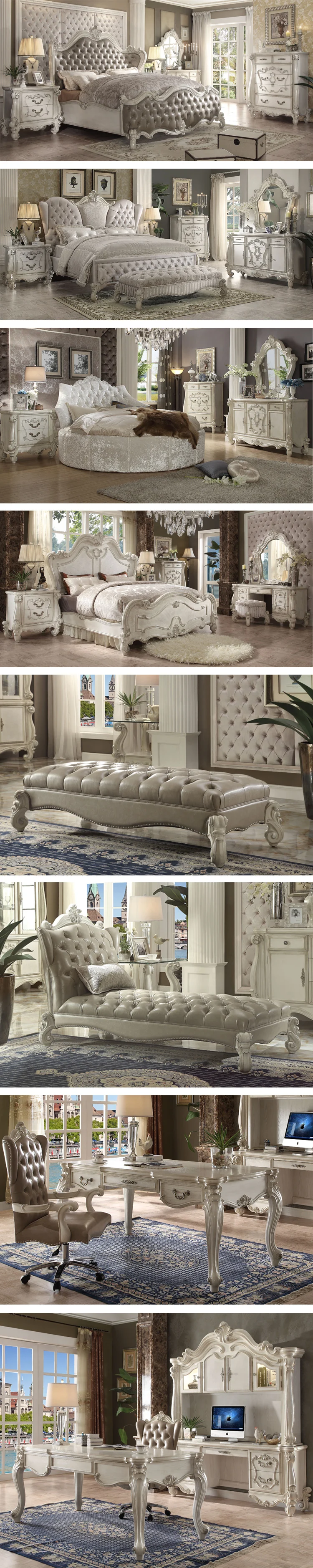 Royal Style Wooden Kind Size Bed With Stool Bedroom Furniture Set