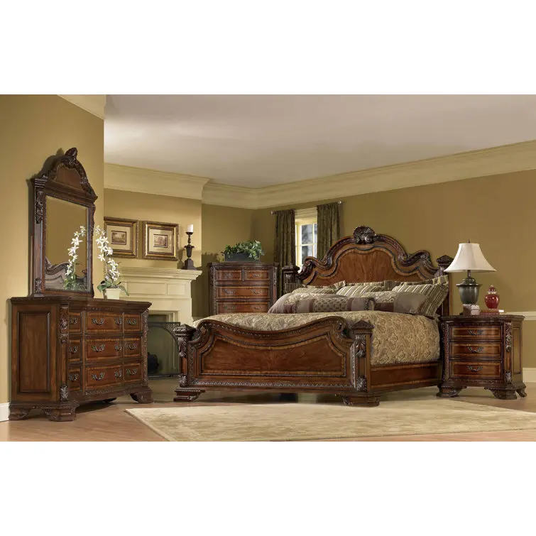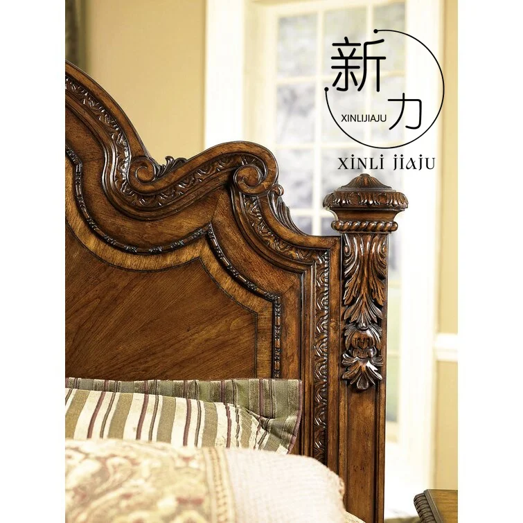 Rustic Royal European Double Bed Headboard Wood Full Size Luxury Bed Frame Platform Sleeping Cama De Casal Home Furniture