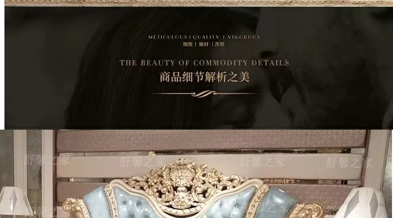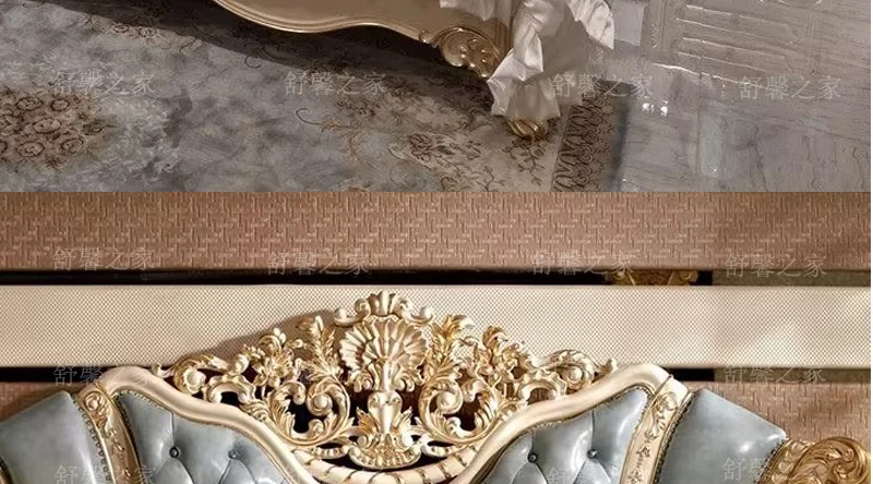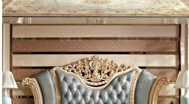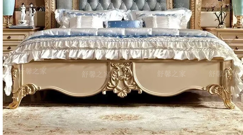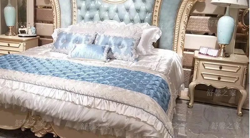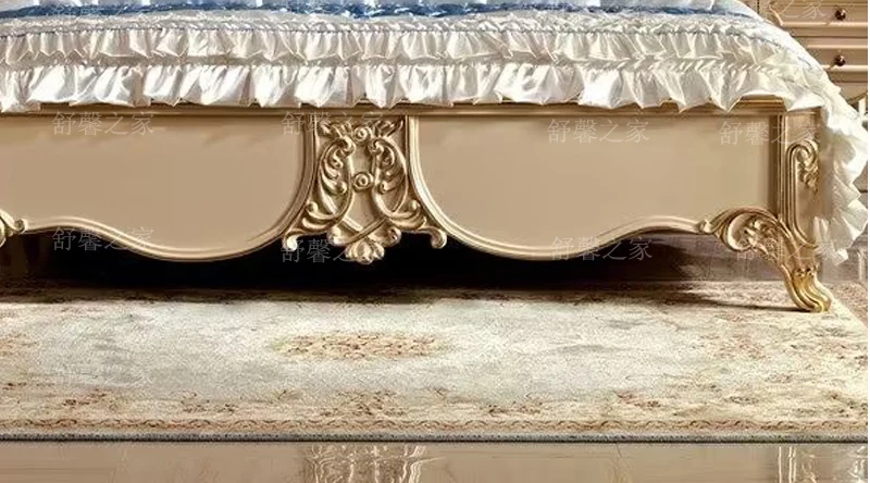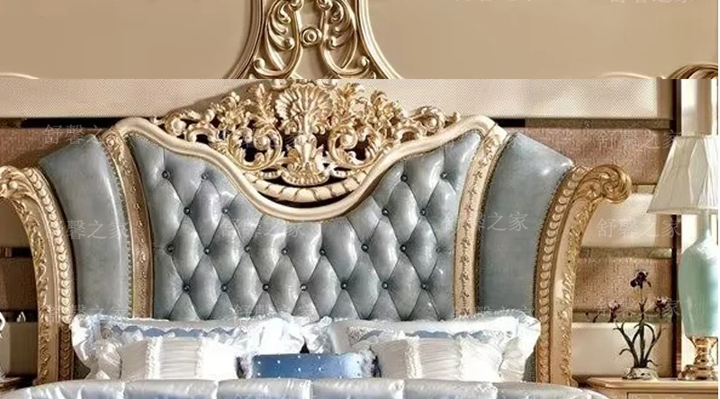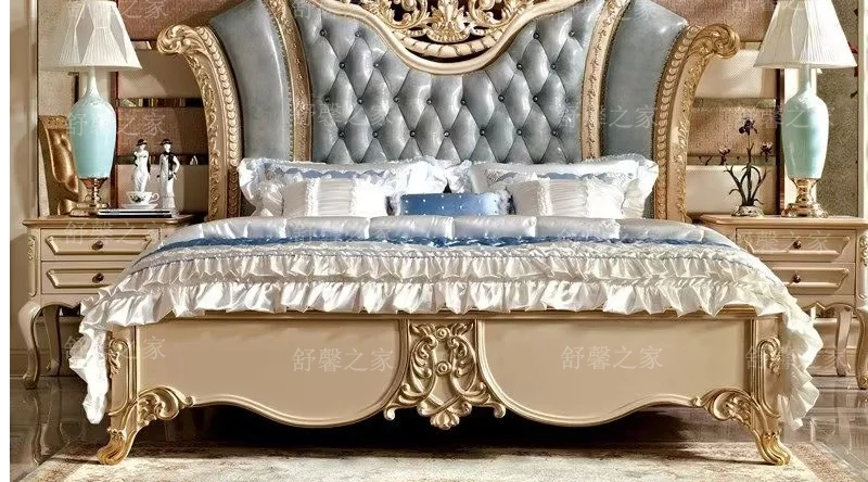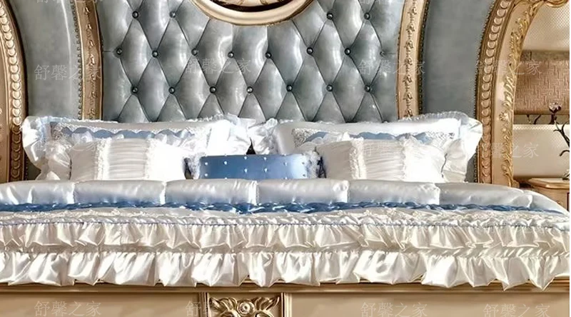 Solid wood carved double bed, European style leather princess bed, Italian villa high-end customized 1.8-meter wedding bed
