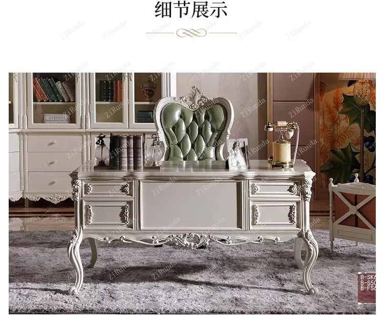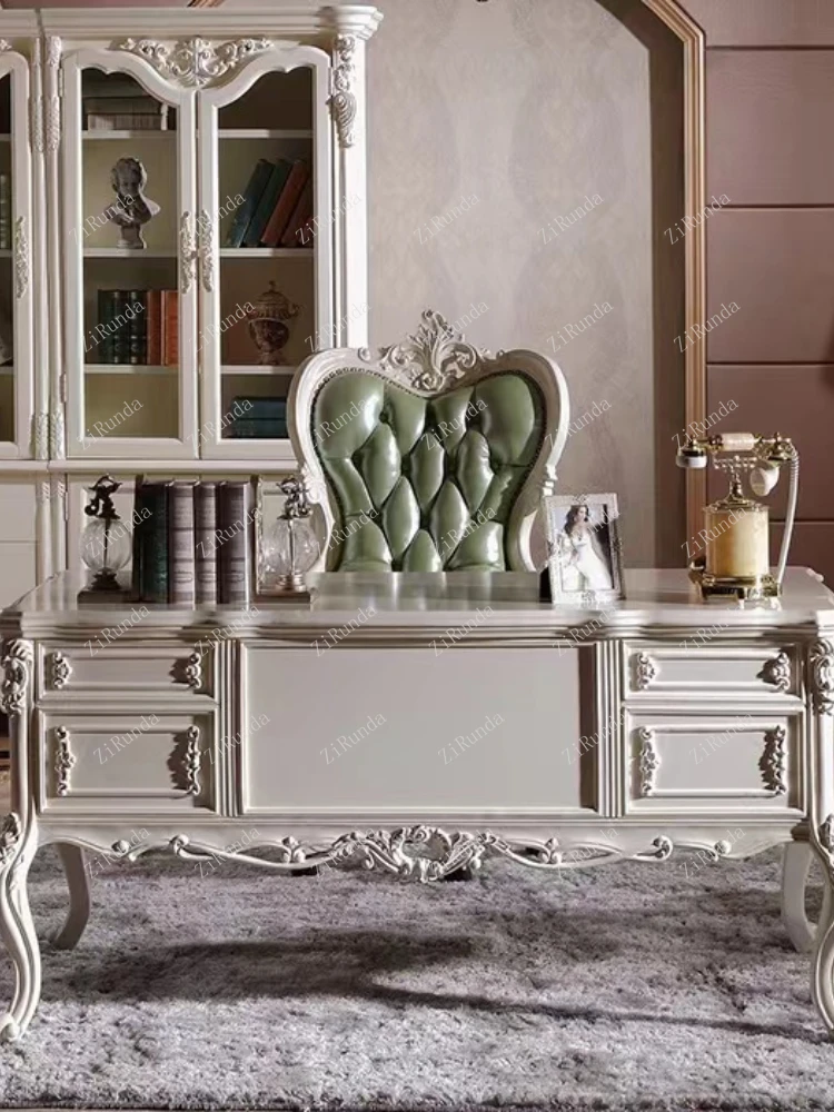 Solid wood luxury desk bookcase European-style desk home office desk and chair computer learning